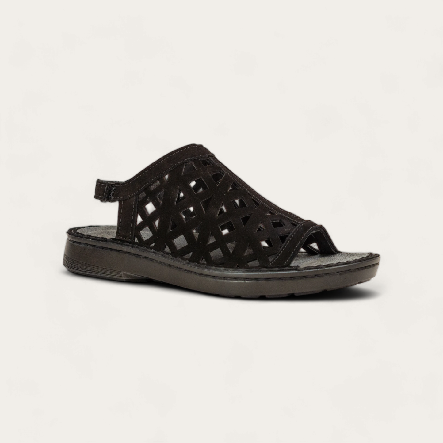 With a hook & loop strap and full upper coverage, the Amadora sandal is both comfortable and stylish. Naot's removable, anatomic cork & latex footbed is wrapped in pampering suede and molds to the shape of the foot with wear. The Utopia Collection features a 1.25" polyurethane sole which is extremely lightweight and durable. American Podiatric Medical Association (APMA) Accepted for promoting good foot health. Our patented Naot Replacement Footbeds are also available for Amadora.