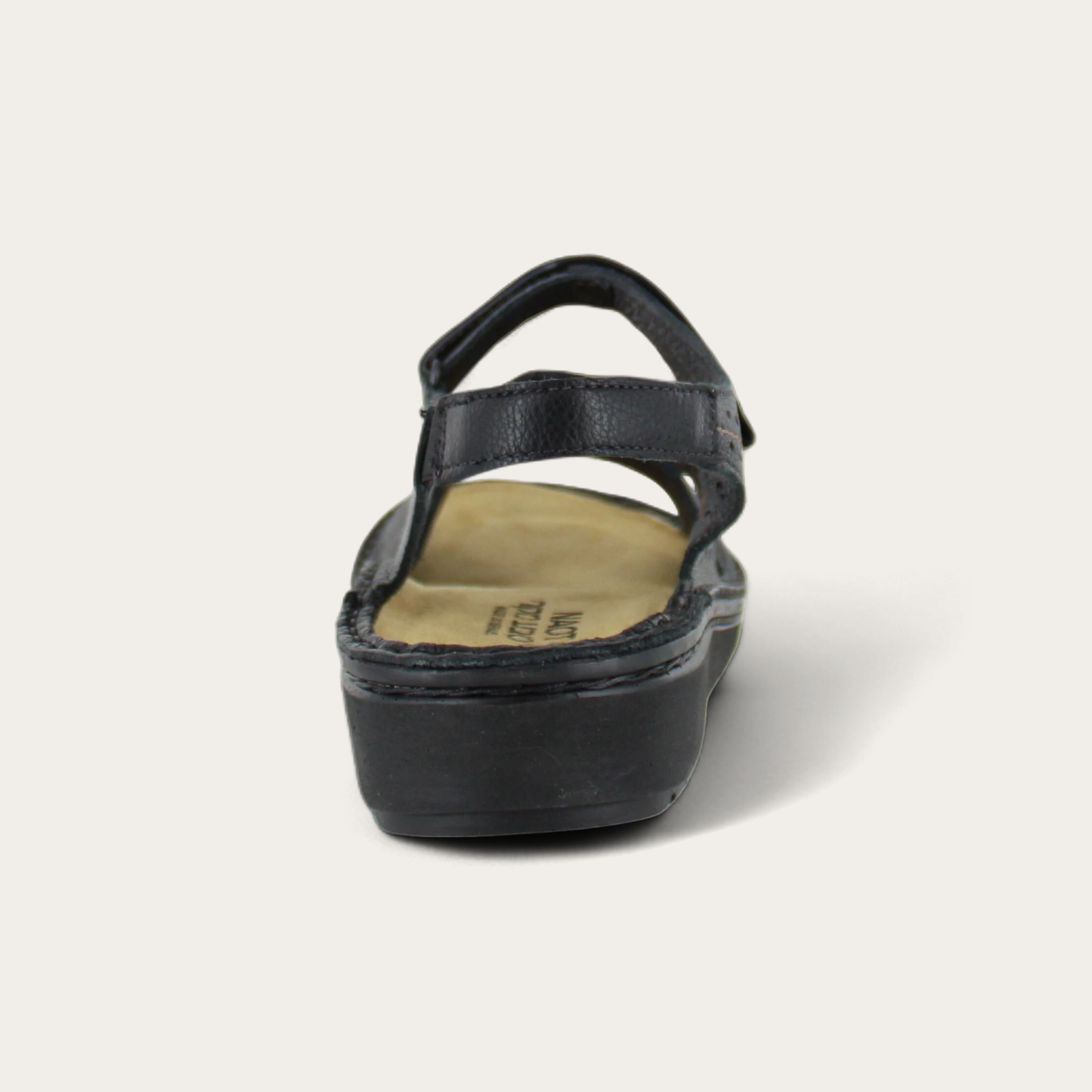 The Birgit is a strappy, adjustable sandal featuring a perforated design and contrasting stitching. Naot's removable, anatomic cork & latex footbed is wrapped in pampering suede and molds to the shape of the foot with wear. The Scandinavian Collection features a 1.25" polyurethane sole which is extremely lightweight and durable. American Podiatric Medical Association (APMA) Accepted for promoting good foot health. Our patented Naot Replacement Footbeds are also available for Birgit.