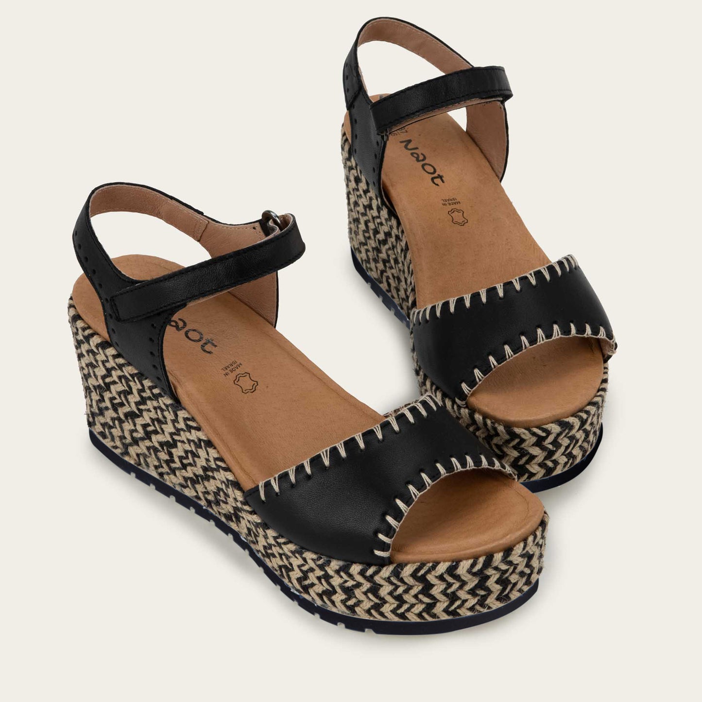 Introducing Blanes - where modern versatility meets timeless style. This sandal features a backstrap with a hook and loop closure, ensuring a secure and adjustable fit. Contrasting stitch accents add a touch of sophistication, making Blanes a standout choice for casual elegance. Perfect for everyday wear, Blanes combines comfort with understated chic for any occasion. Crafted with Naot's anatomic cork and latex footbed wrapped in smooth leather, these shoes mold to the shape of your foot with wear, ensuring personalized comfort. The Costal Collection's EVA sole offers the look of a 3-inch wedge without the discomfort, providing both style and stability with every step.