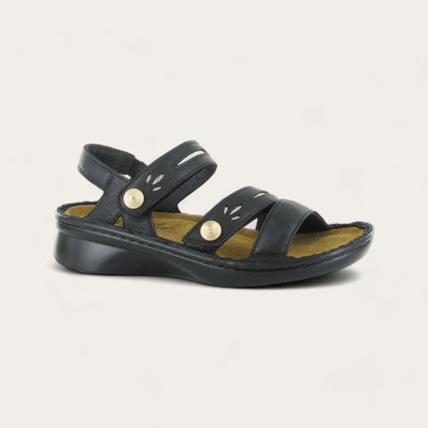 Naot Cadence features beautifully embellished three front straps with two hook & loop straps making it fully adjustable. The Cadence sandal is stylish yet extra comfortable. Naot's removable, anatomic cork & latex footbed is wrapped in pampering suede and molds to the shape of the foot with wear. The Allegro Collection features a 1.5" polyurethane sole which is extremely lightweight and durable. Our patented Naot Replacement Footbeds are also available for Cadence.