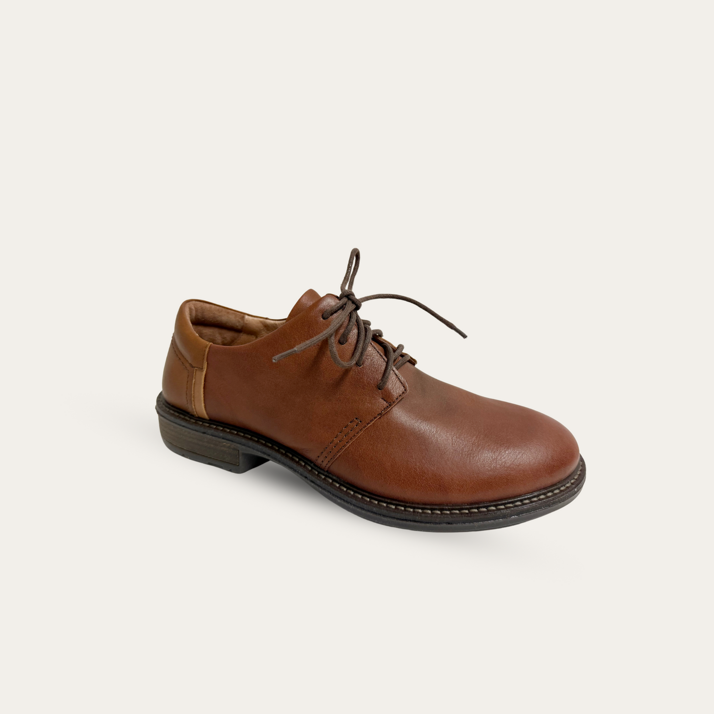 The Naot Chief is a lace up dress shoe with a contrasting heel cup. This style has a padded heel cup & tongue for ultimate comfort. The Chief has padded technical lining in the front for comfort and moisture absorption. Naot's removable, anatomic cork & latex footbed is wrapped in pampering suede and molds to the shape of the foot with wear. The Executive Collection features a 1.75" TPR sole. This collection uses a hand-sewn Strobel construction making it strong and extremely flexible. Our patented Naot Replacement Footbeds are also available for Chief.