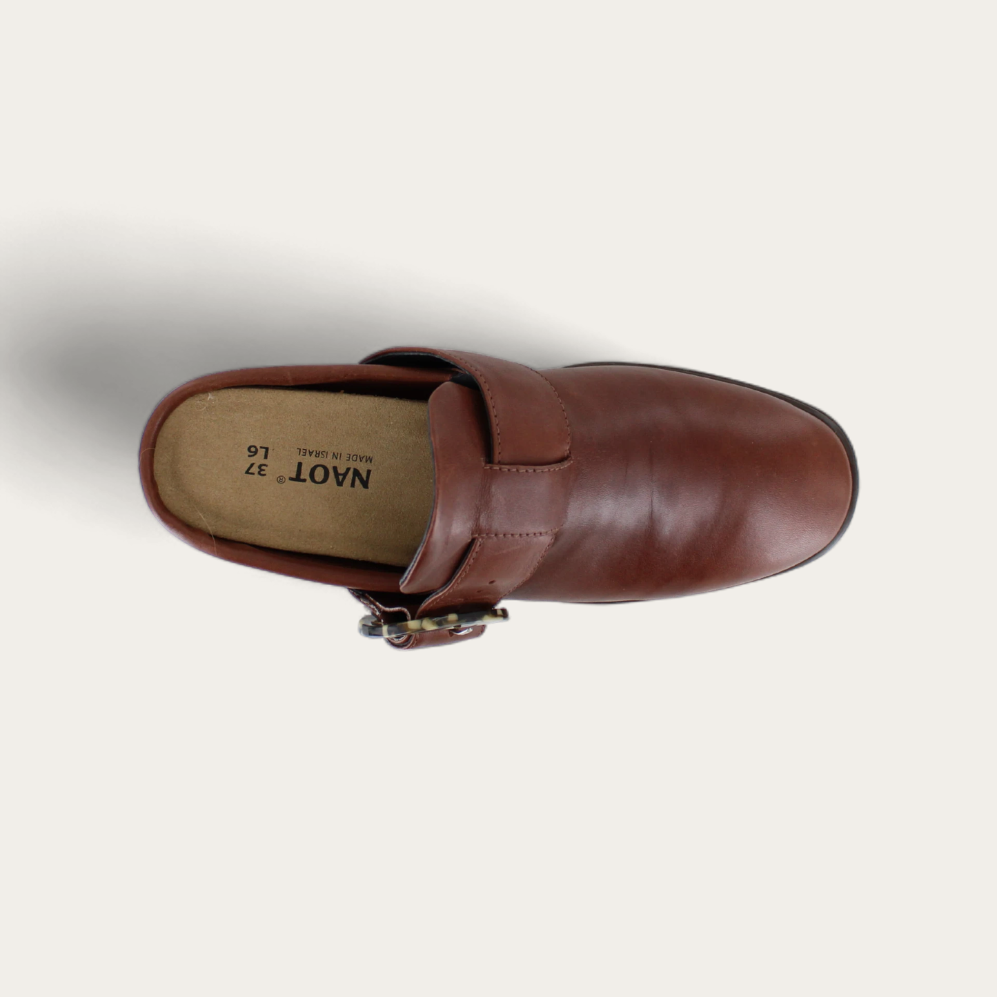 Naot Choice is a a stylish mule with a 1.8" block heel & faux buckle accent. The Choice features arch support and a metal shank. Naot's flexible, removable, anatomic cork & latex footbed is wrapped in pampering suede and molds to the shape of the foot with wear. The Heritage Collection features a 1.8" TPU sole.
