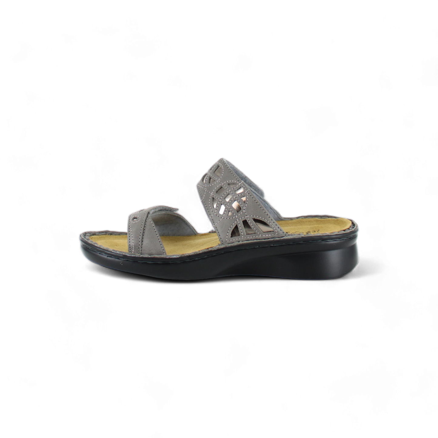 The Cornet is a chic slide sandal with stitch designs and contrasting polyurethane underlay. This style features a double hook and loop for complete adjustability. Naot's removable, anatomic cork & latex footbed is wrapped in pampering suede and molds to the shape of the foot with wear. The Allegro Collection features a 1.5" polyurethane sole which is extremely lightweight and durable. Our patented Naot Replacement Footbeds are also available for Cornet.
