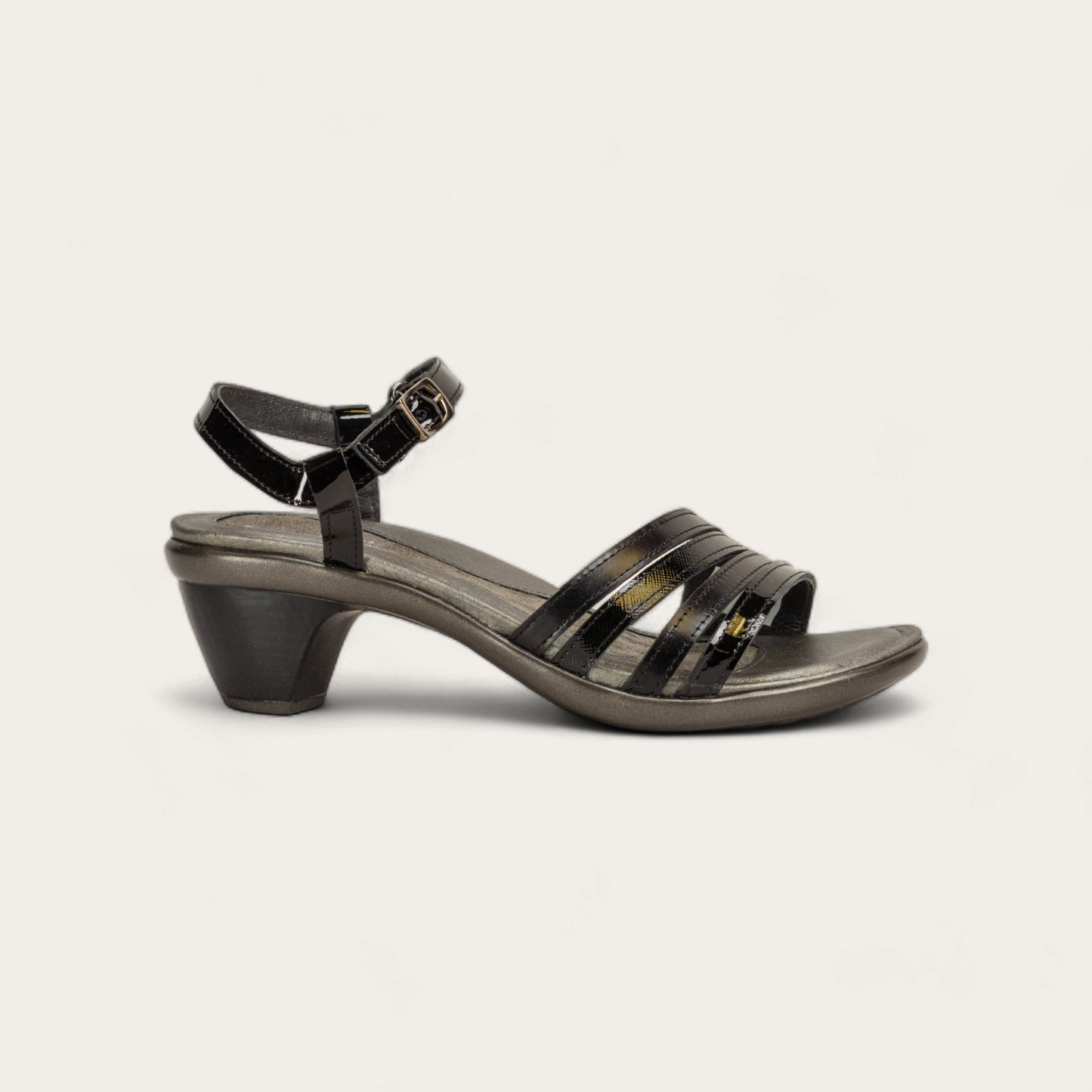 Delicate and strappy, Naot Current is a must-have minimalist evening sandal. This style features a supportive backstrap and a buckle closure that allows adjustability. Naot's anatomic cork & latex footbed is wrapped in leather with a microfiber center to prevent slipping and molds to the shape of the foot with wear. The Avantgarde Collection features a TPR sole with a metal shank. This sole offers the look of a 2" heel without the feel.
