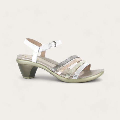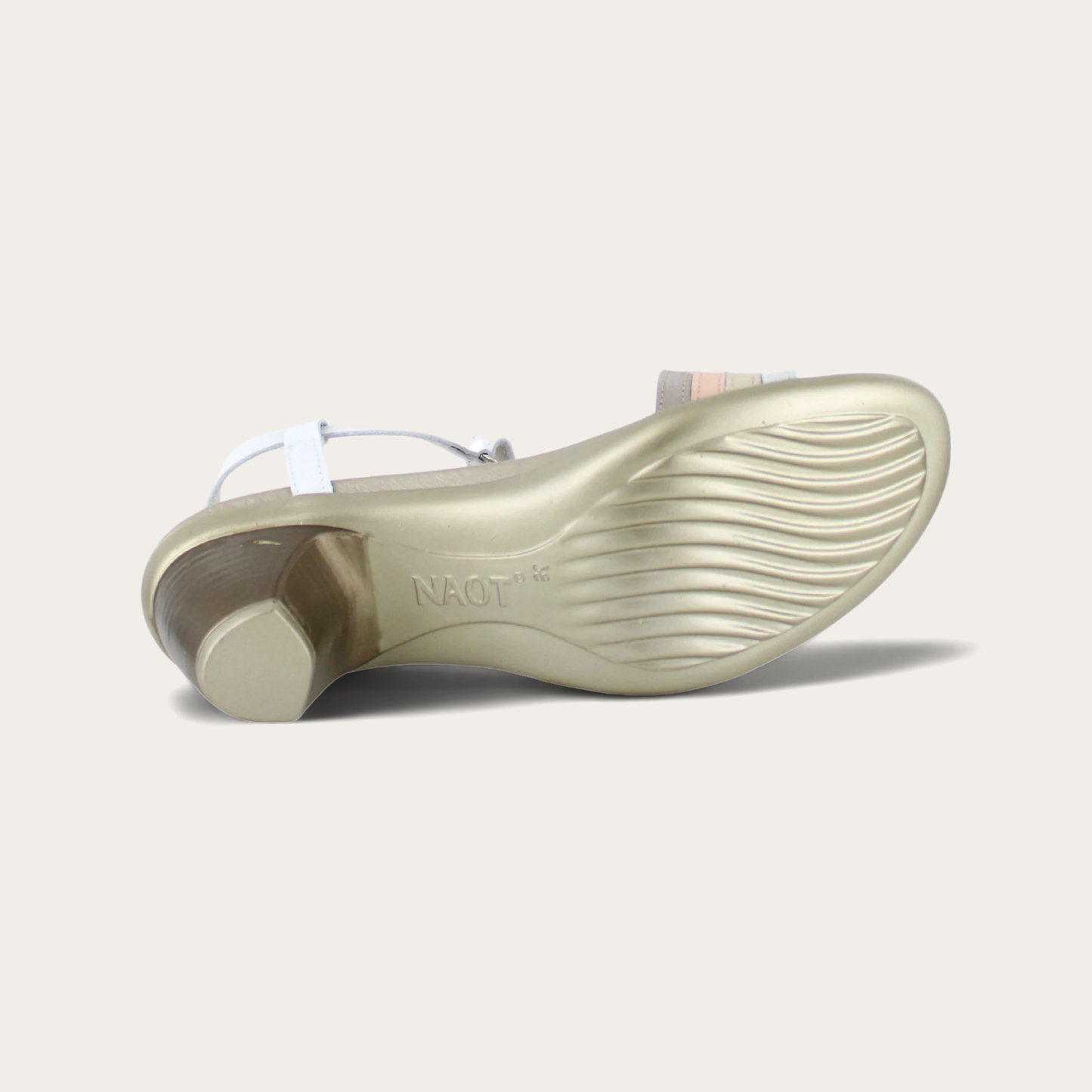 Delicate and strappy, Naot Current is a must-have minimalist evening sandal. This style features a supportive backstrap and a buckle closure that allows adjustability. Naot's anatomic cork & latex footbed is wrapped in leather with a microfiber center to prevent slipping and molds to the shape of the foot with wear. The Avantgarde Collection features a TPR sole with a metal shank. This sole offers the look of a 2" heel without the feel.