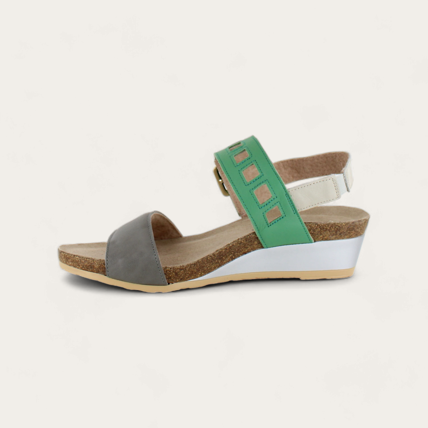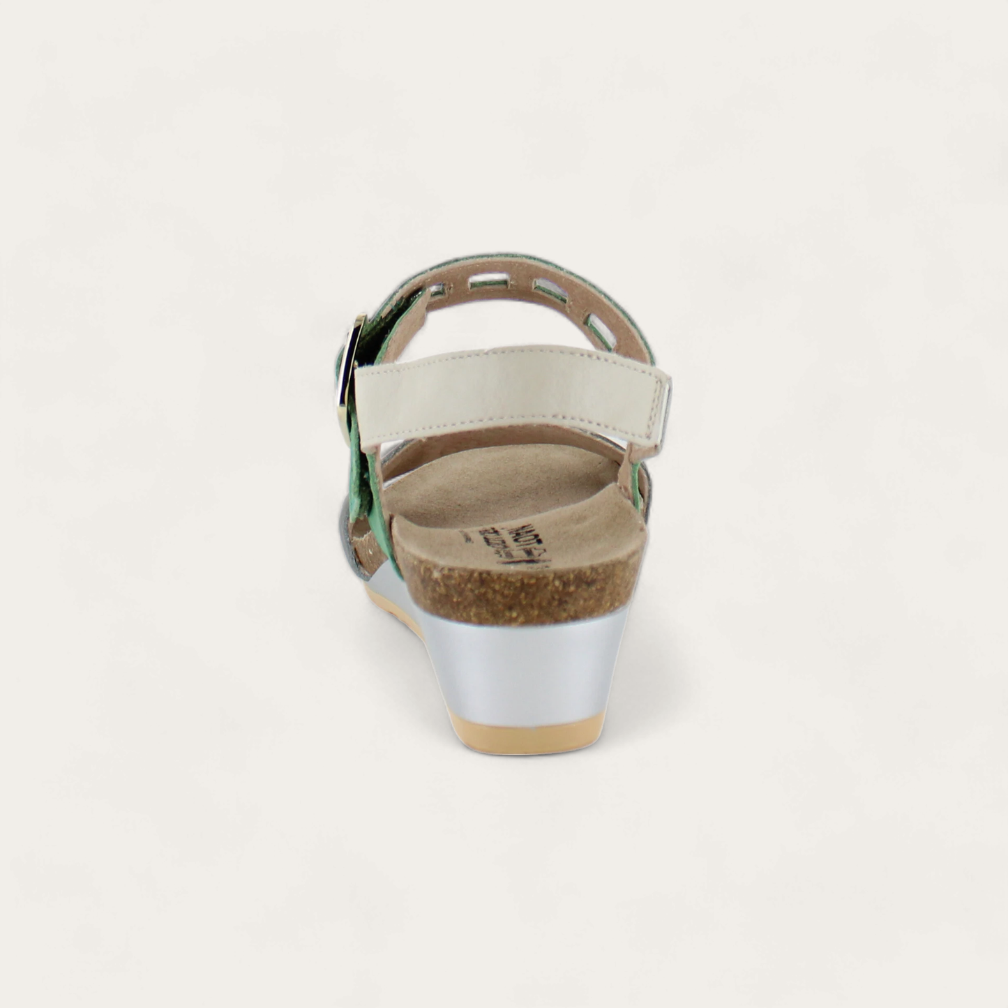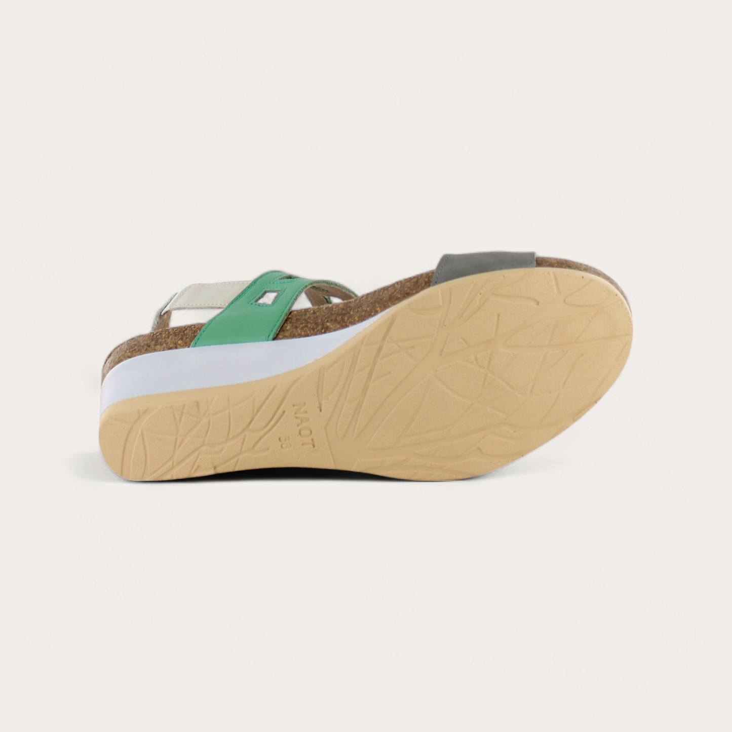 Go day to night with all day comfort and style in the Dynasty wedge. This sandal features fun multi colored straps and a hook and loop closure for adjustability. Naot's anatomic cork & latex footbed is wrapped in a pampering suede and molds to the shape of the foot with wear.