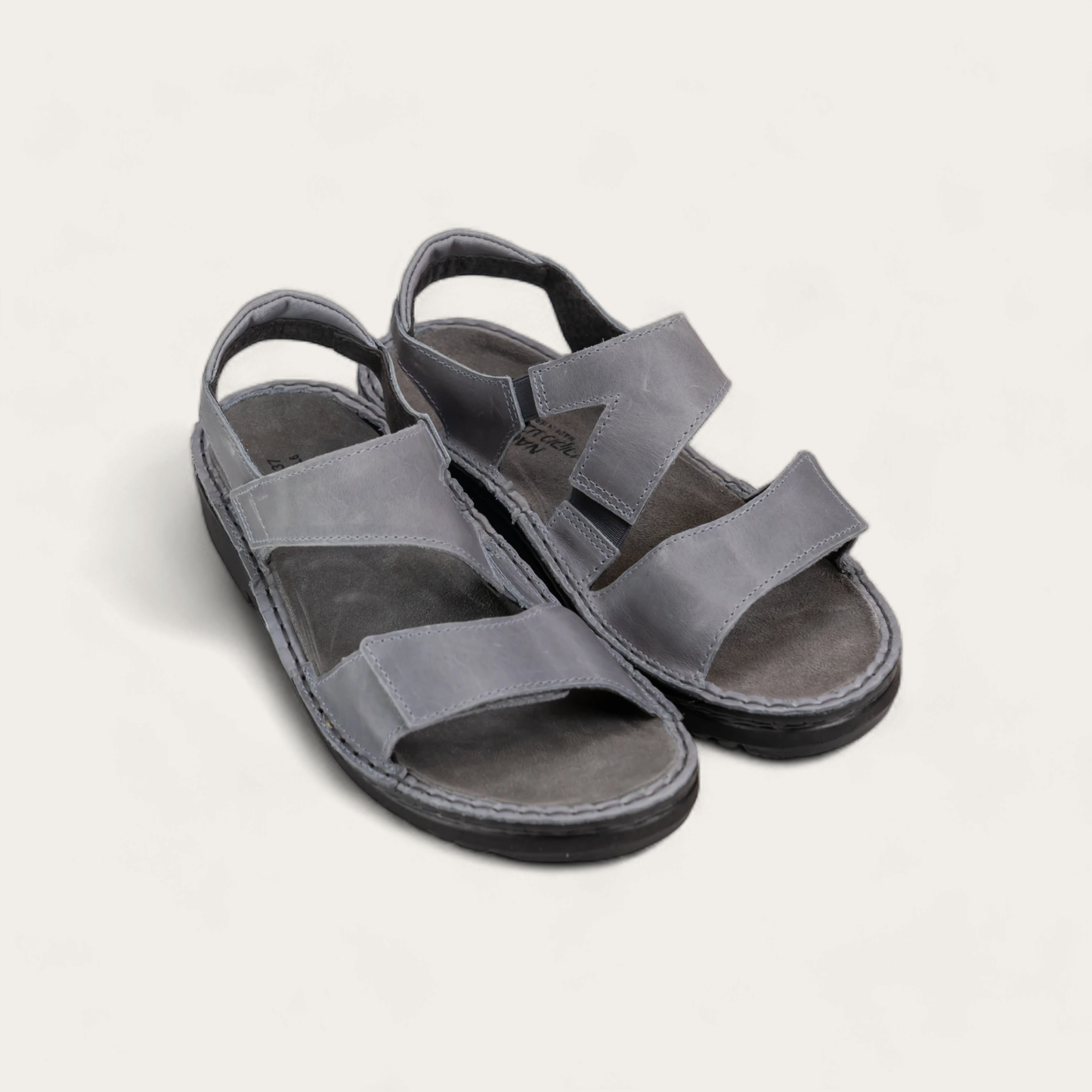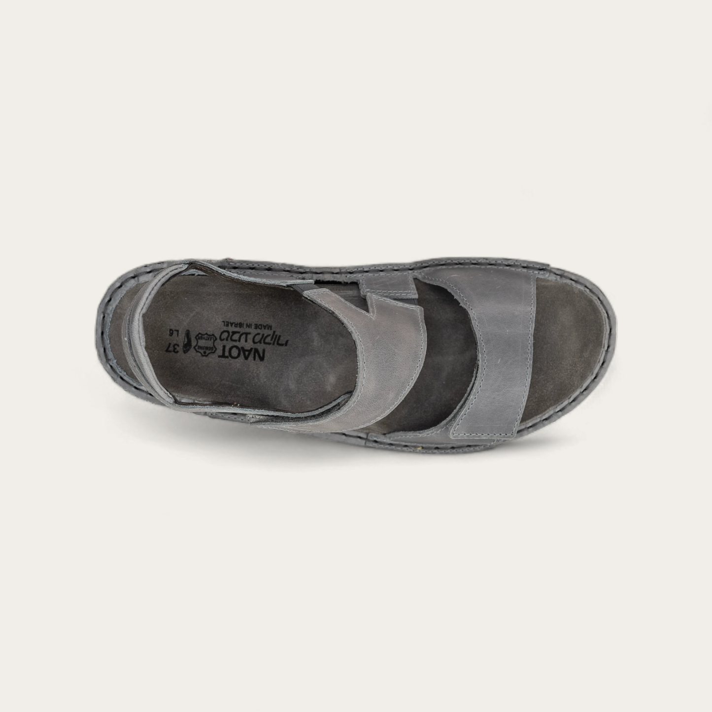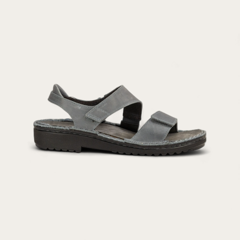 The Enid is a completely adjustable sandal with a padded backstrap. This style has a hook & loop closure at both the instep & front strap with added gore at the instep for adjustability. Naot's removable, anatomic cork & latex footbed is wrapped in pampering suede and molds to the shape of the foot with wear. The Scandinavian Collection features a 1.25" polyurethane sole which is extremely lightweight and durable. American Podiatric Medical Association (APMA) Accepted for promoting good foot health. Our patented Naot Replacement Footbeds are also available for Enid.