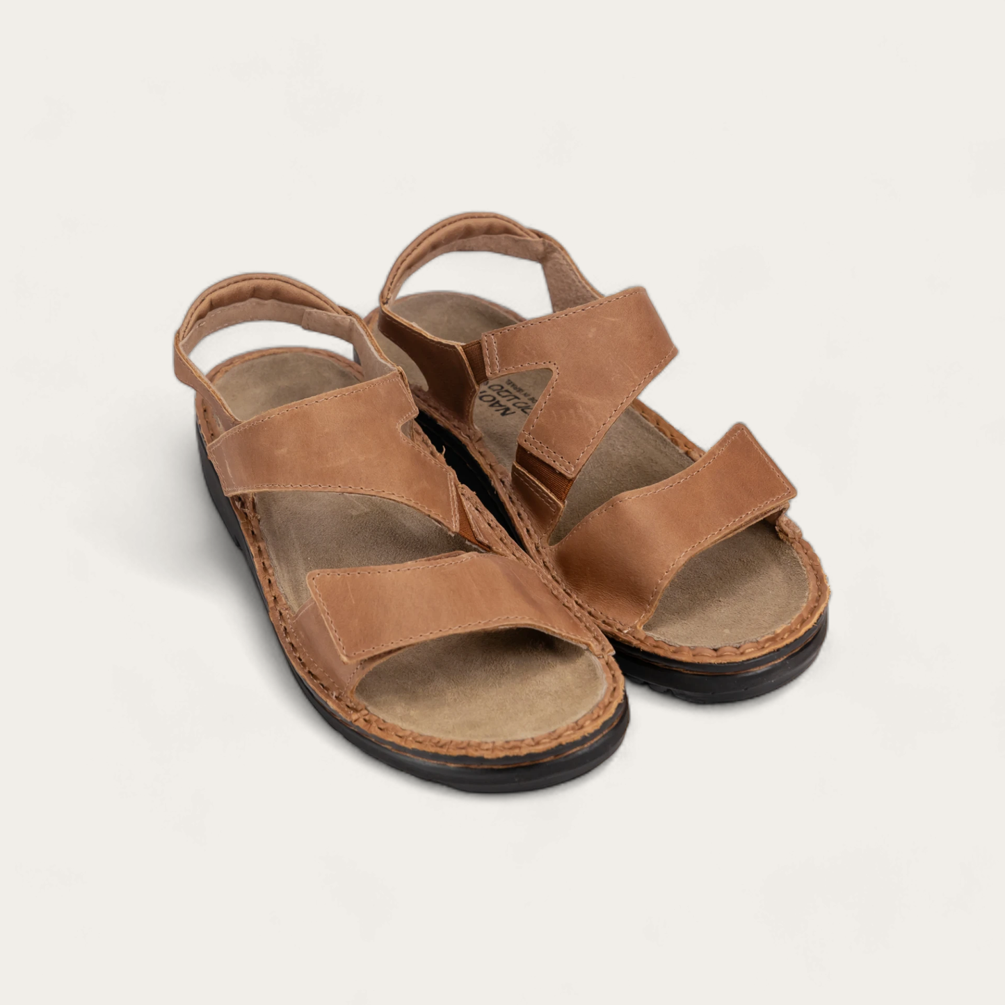 The Enid is a completely adjustable sandal with a padded backstrap. This style has a hook & loop closure at both the instep & front strap with added gore at the instep for adjustability. Naot's removable, anatomic cork & latex footbed is wrapped in pampering suede and molds to the shape of the foot with wear. The Scandinavian Collection features a 1.25" polyurethane sole which is extremely lightweight and durable. American Podiatric Medical Association (APMA) Accepted for promoting good foot health. Our patented Naot Replacement Footbeds are also available for Enid.
