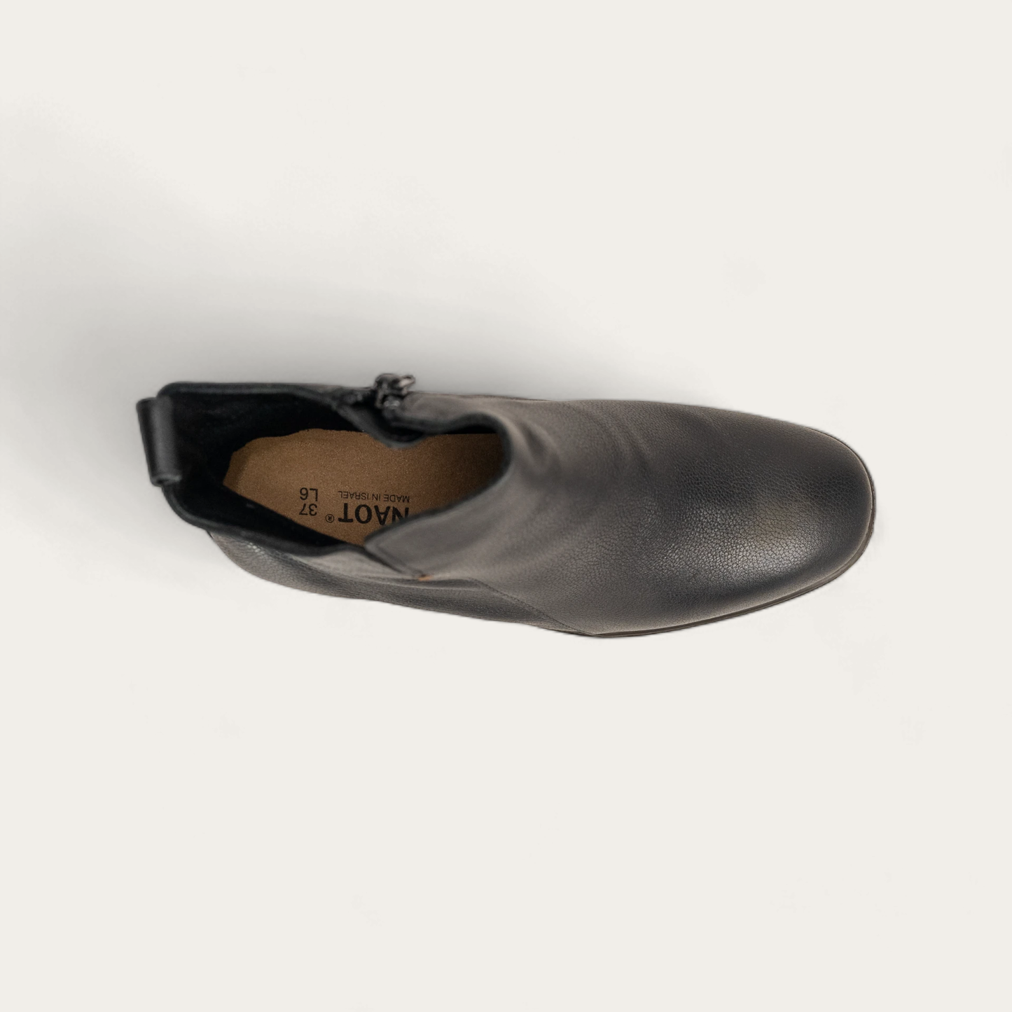 A low block heel & sleek almond toe, The Naot Ethic is the perfect classic bootie. This style features arch support and a metal shank. Naot's flexible, removable, anatomic cork & latex footbed is wrapped in pampering suede and molds to the shape of the foot with wear. The Heritage Collection features a 1.8" TPU sole.