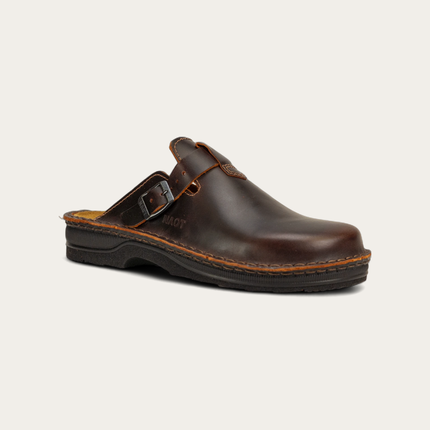 The Naot Fiord is a clog with a functional buckle at the instep for adjustability. Naot's removable, anatomic cork & latex footbed is wrapped in pampering suede and molds to the shape of the foot with wear. The Men's Scandinavian Collection features a 1.5" polyurethane sole which is extremely lightweight, durable & slip resistant. American Podiatric Medical Association (APMA) Accepted for promoting good foot health. Our patented Naot Replacement Footbeds are also available for Fiord.