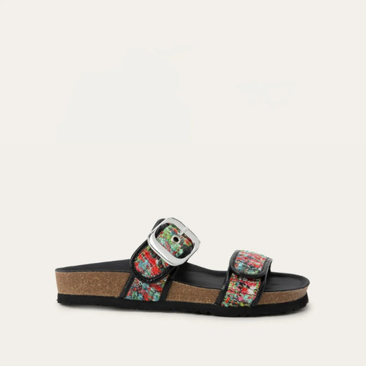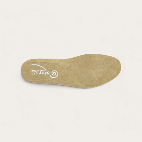 Naot's Serengeti Footbed is removable, anatomic and made of cork & latex covered in suede. This footbed molds to the shape of the foot with wear like a footprint in the sand.
