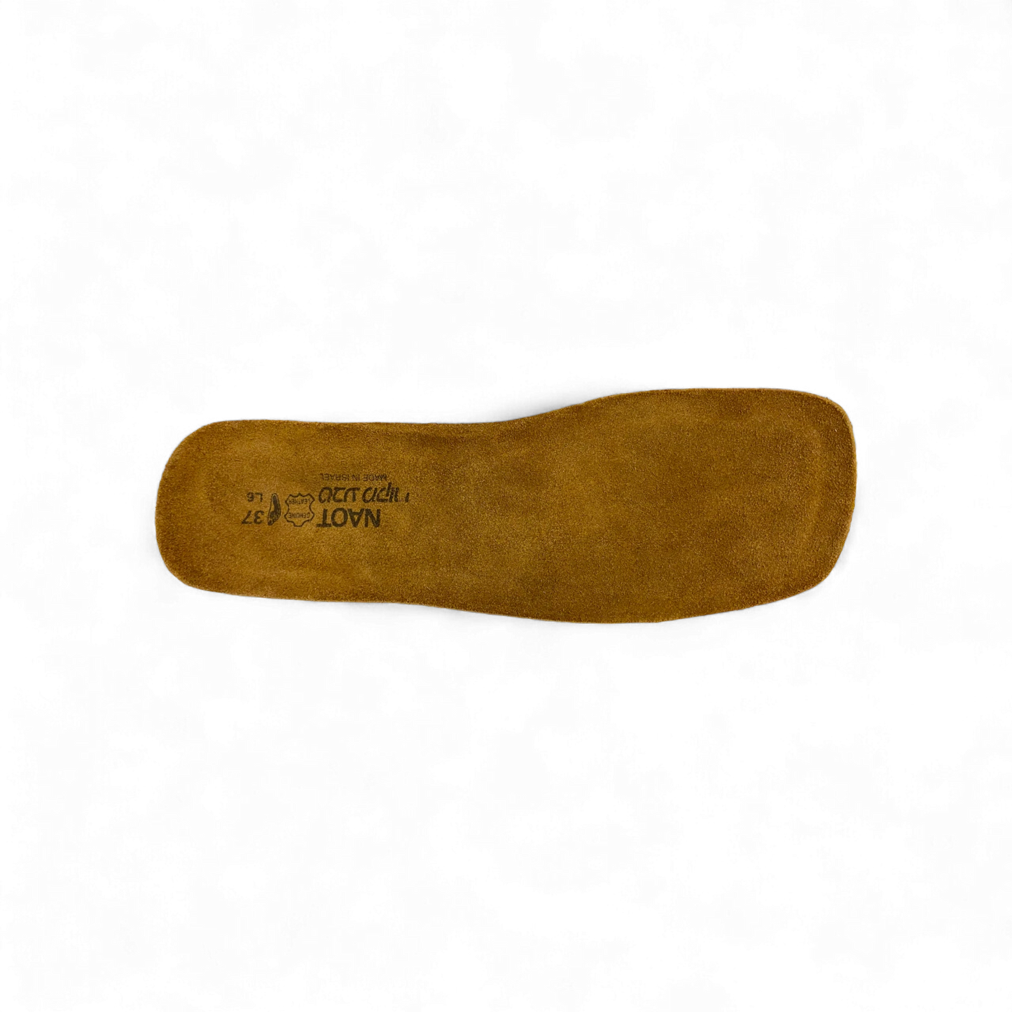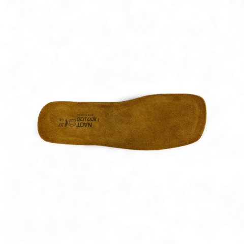 Naot's Wasabi Womens Footbed is removable, anatomic and made of cork and latex covered in suede. This footbed molds to the shape of the foot with wear like a footprint in the sand.