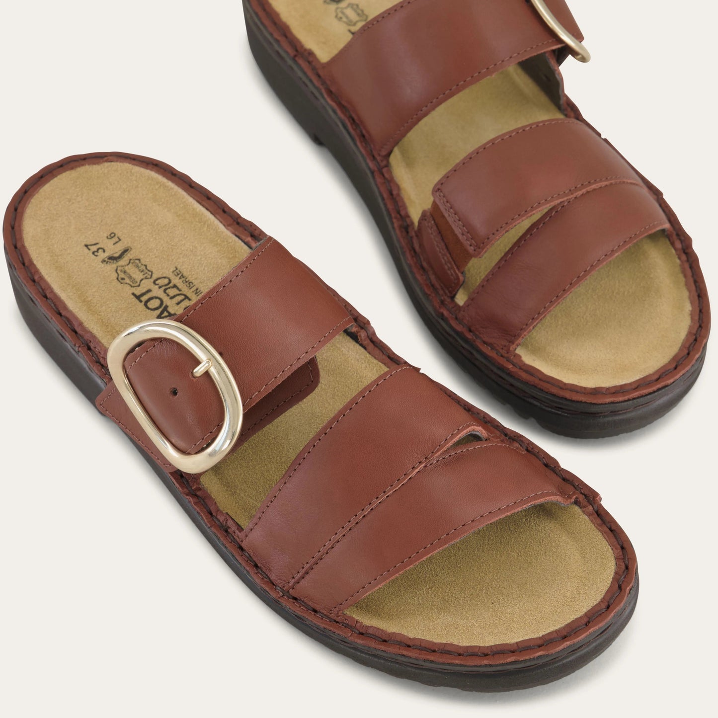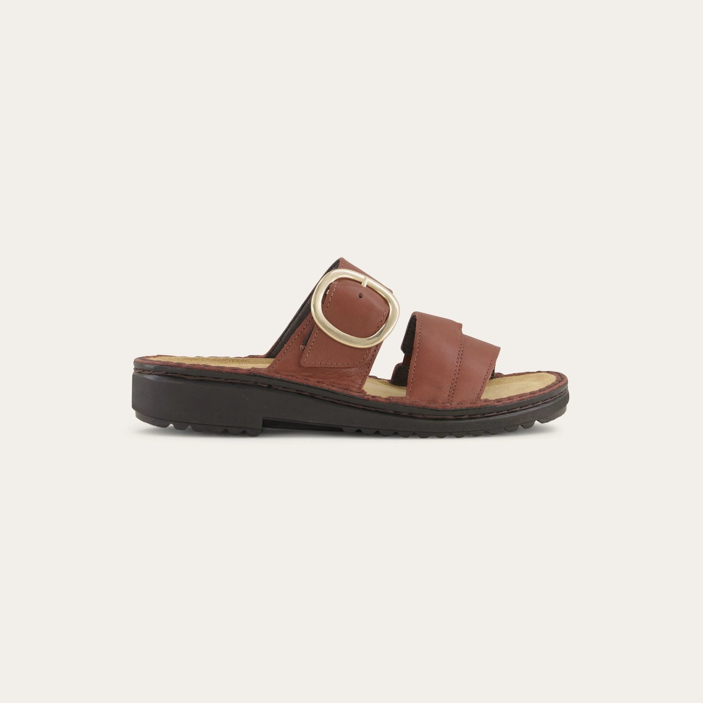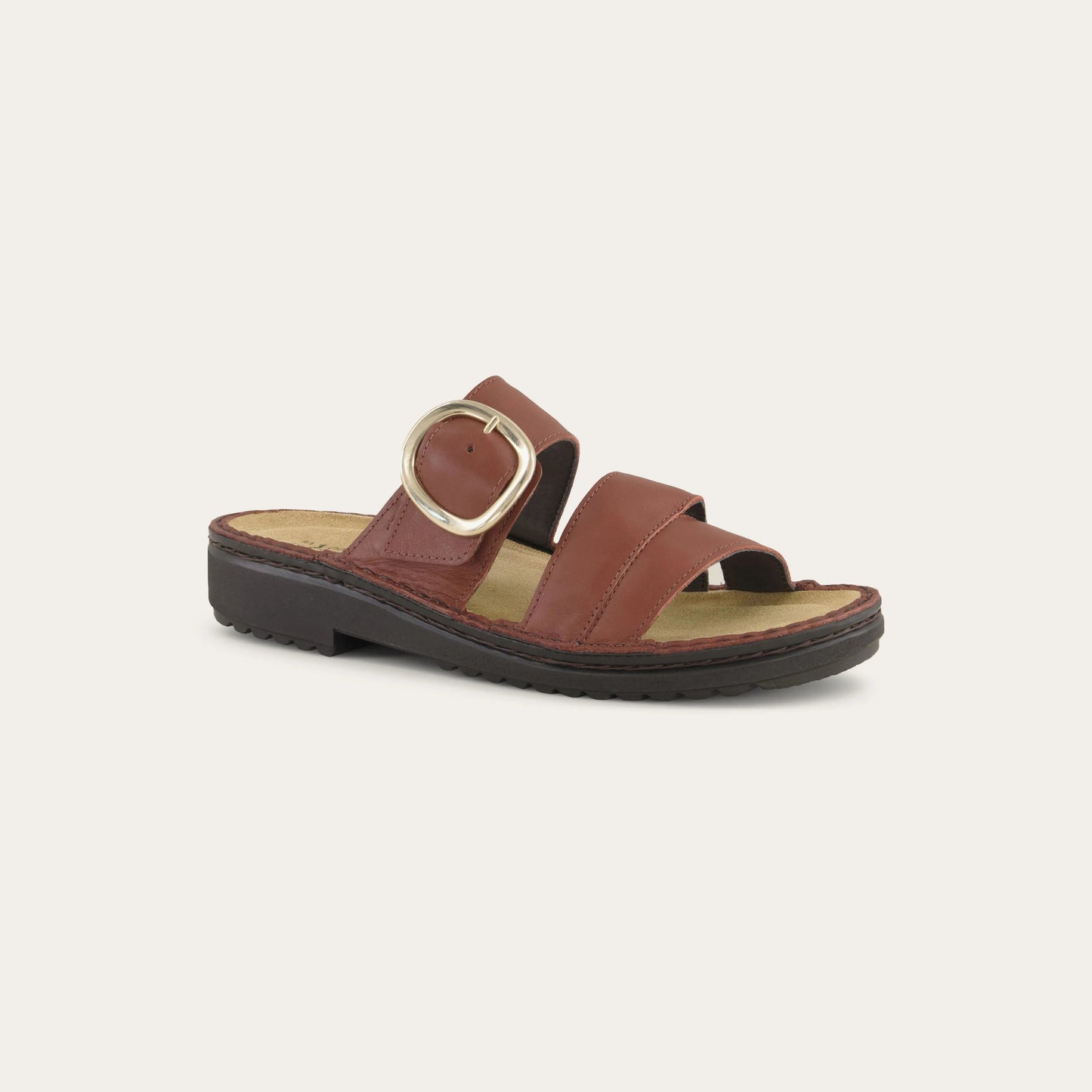 Frey is a stylish slip-on sandal with a buckle accent featuring our removable footbed for comfort. Naot's removable, anatomic cork & latex footbed is wrapped in pampering suede and molds to the shape of the foot with wear. The Low Scandinavian Collection features a 1.25" polyurethane sole which is extremely lightweight and durable. American Podiatric Medical Association (APMA) Accepted for promoting good foot health. Our patented Naot Replacement Footbeds are also available for Frey.