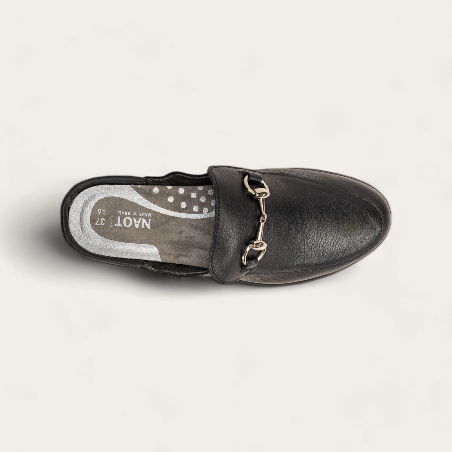 Meet the Naot Halny your new staple clog crafted from soft, smooth leather. These loafer slides boast Naot's removable cork & latex footbed for all-day comfort. The Aura Collection offers a 1.5" anti-slip polyurethane sole and a metal shank. Hand-sewn Strobel construction ensures strength and flexibility. Step into comfort, style, and durability. Your feet will thank you! Halny fits our Aura Footbed.