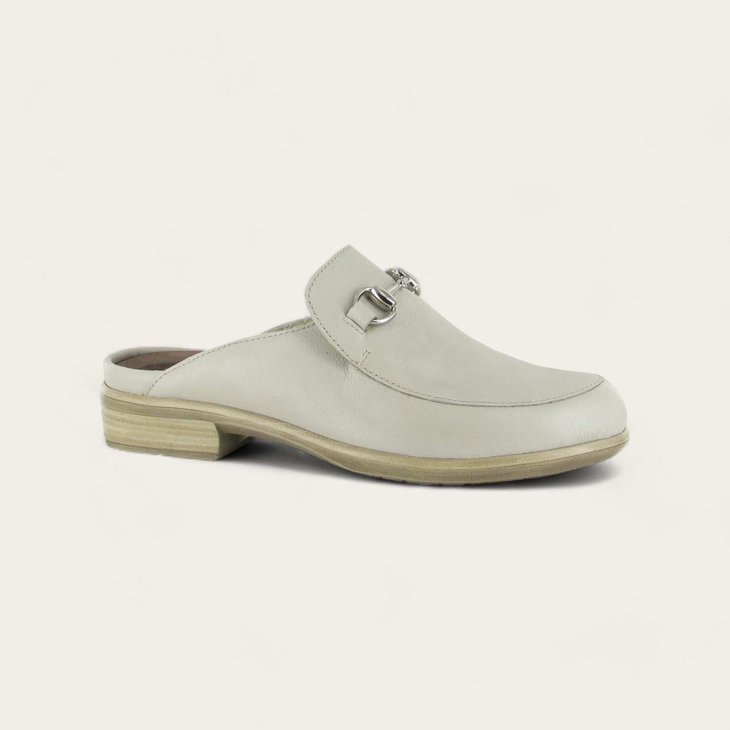 Meet the Naot Halny your new staple clog crafted from soft, smooth leather. These loafer slides boast Naot's removable cork & latex footbed for all-day comfort. The Aura Collection offers a 1.5" anti-slip polyurethane sole and a metal shank. Hand-sewn Strobel construction ensures strength and flexibility. Step into comfort, style, and durability. Your feet will thank you! Halny fits our Aura Footbed.