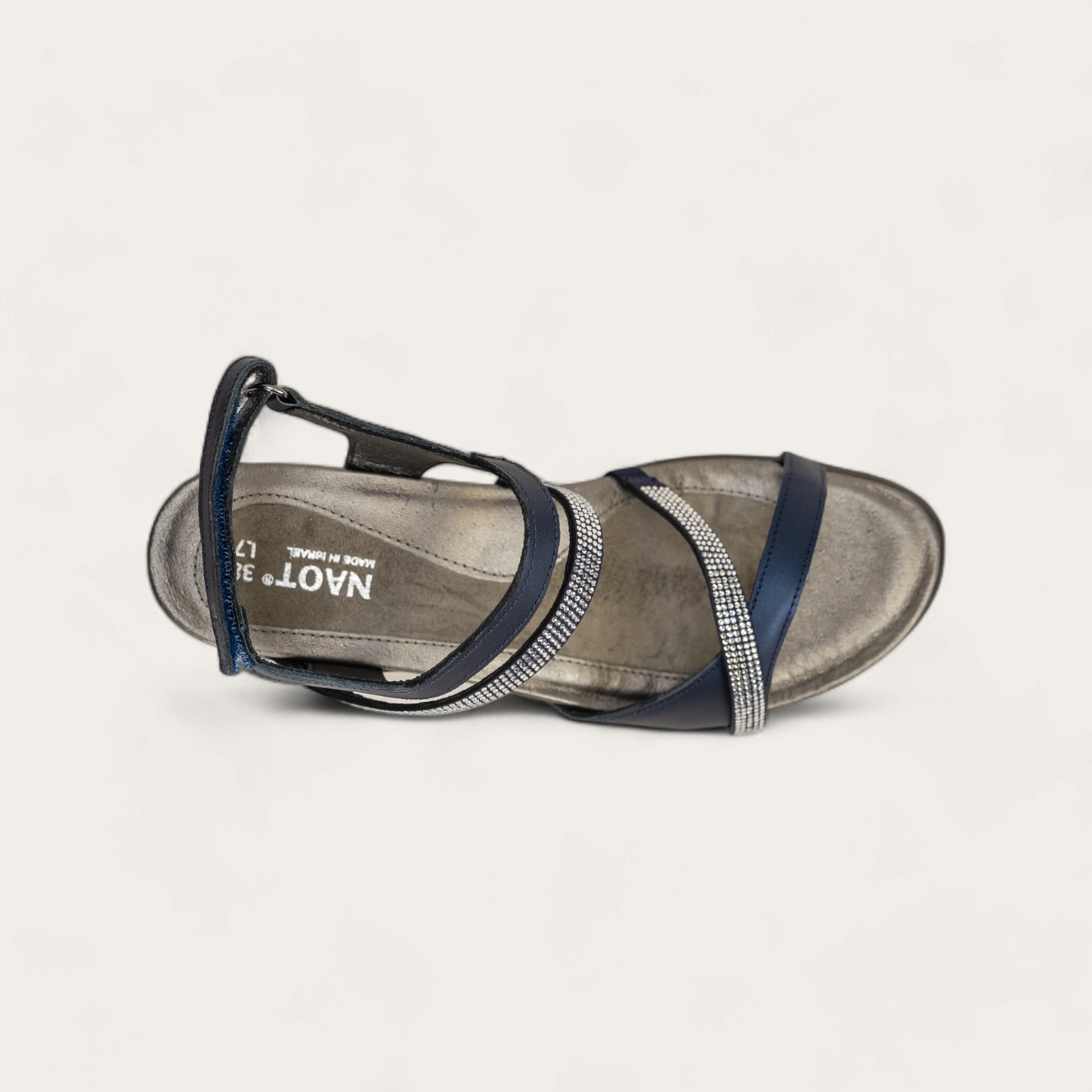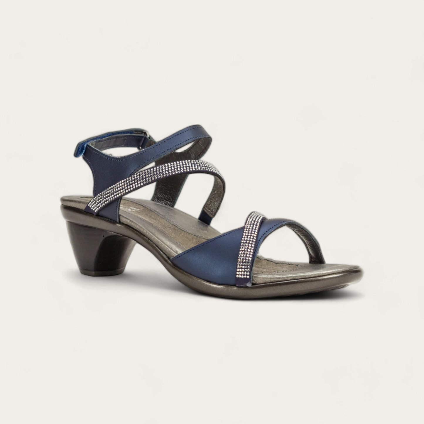 The Innovate is the perfect backstrap heel for all of your festive events! This sandal has a hook & loop backstrap & gore at the middle straps creating a custom fit. The Innovate has a padded front strap for ultimate comfort. The feminine rhinestone accents make this shoe stand out from the crowd. Naot's anatomic cork & latex footbed is wrapped in leather with a microfiber center to prevent slipping and molds to the shape of the foot with wear. The Avantgarde Collection features a TPR sole with a metal shank. This sole offers the look of a 2" heel without the feel.