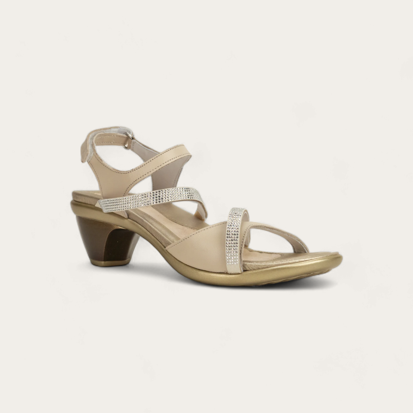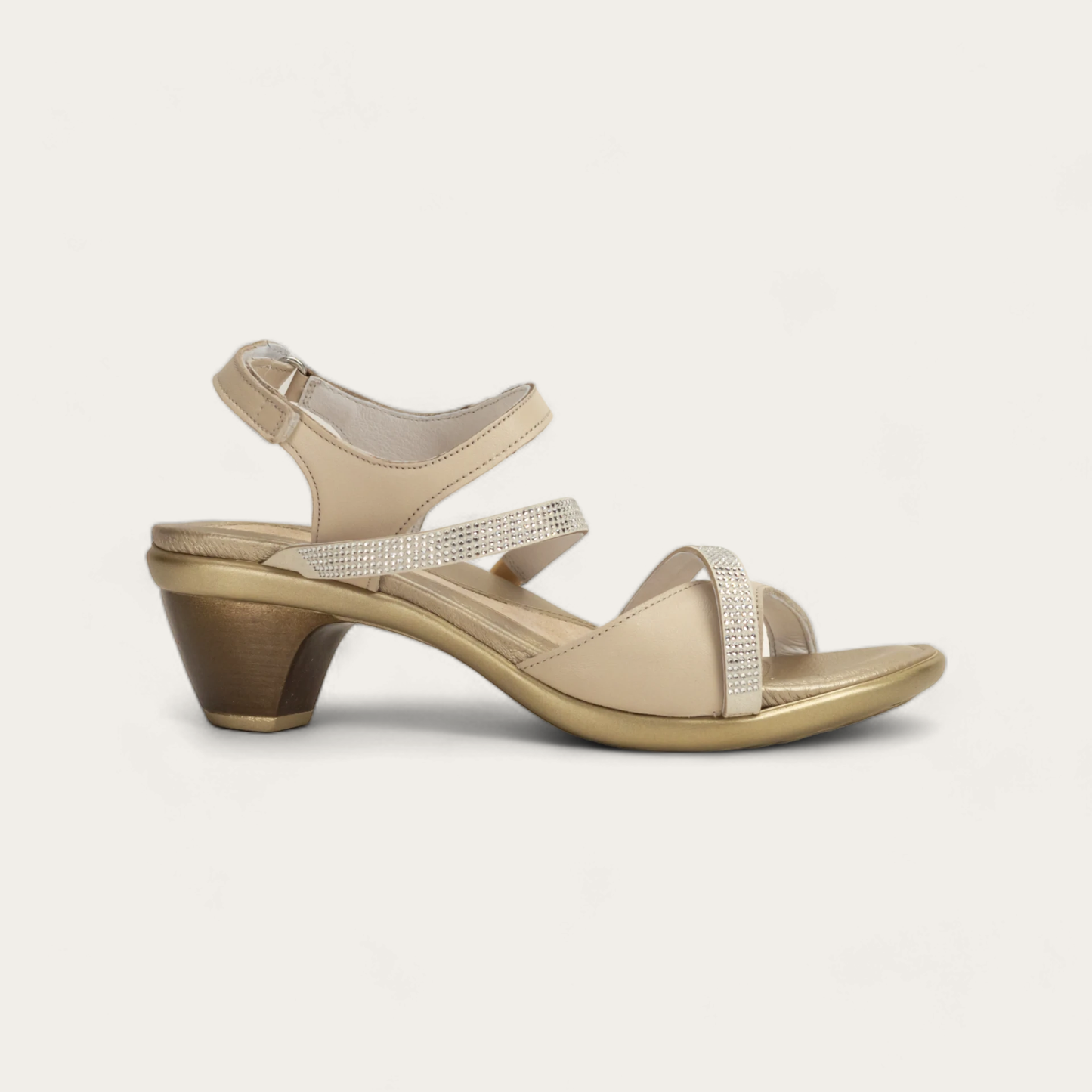 The Innovate is the perfect backstrap heel for all of your festive events! This sandal has a hook & loop backstrap & gore at the middle straps creating a custom fit. The Innovate has a padded front strap for ultimate comfort. The feminine rhinestone accents make this shoe stand out from the crowd. Naot's anatomic cork & latex footbed is wrapped in leather with a microfiber center to prevent slipping and molds to the shape of the foot with wear. The Avantgarde Collection features a TPR sole with a metal shank. This sole offers the look of a 2" heel without the feel.