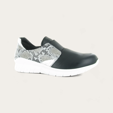 A fashionable, sneaker inspired slipon, the Intrepid has a removable cork & latex footbed that provides all-day comfort. This shoe features a 1.5" slip resistant sole & gore for accessibility. American Podiatric Medical Association (APMA) Accepted for promoting good foot health. The Intrepid fits our Aura Footbed.