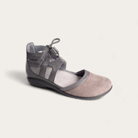 The Kata is a cute transitional shoe. This style has a padded heel cup & instep for ultimate comfort. The Kata has laces at the instep for accessibility & adjustability. The front of this shoe has padded technical lining which provides comfort, warmth & moisture absorption. Naot's removable, anatomic cork & latex footbed is wrapped in pampering suede and molds to the shape of the foot with wear. The Koru Collection features a 1" polyurethane sole which is extremely lightweight, durable & slip resistant. This collection uses a hand-sewn Strobel construction making it strong and extremely flexible.