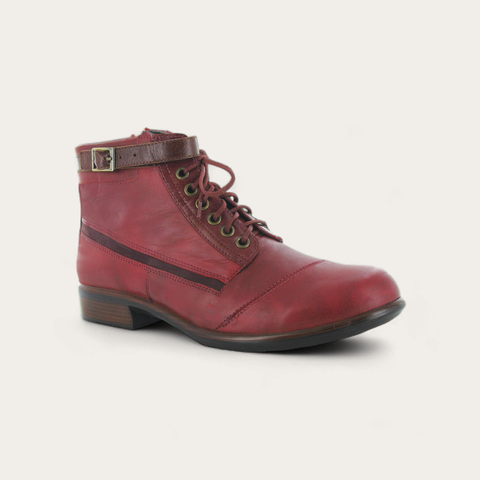 The Naot Kona is fashionable boot that provides a sleek and dressy look. This style features a hook and loop faux buckle as well as a zipper. This boot has padded technical lining for comfort, warmth & moisture absorption. Naot's removable, anatomic cork & latex footbed is wrapped in microfiber & leather and molds to the shape of the foot with wear. The Aura Collection features a 1.5" polyurethane sole with a metal shank which is extremely lightweight, durable & abrasive to prevent slipping. This collection uses a hand-sewn Strobel construction making it strong and extremely flexible. Our patented Naot Replacement Footbeds are also available for Kona. SIZE INFO: * 4" Shaft Height * 8.5" Shaft Circumference * Product measurements were taken using size 37 (US Women's 6), Width M * Please note that measurements may vary by size DETAILS:
