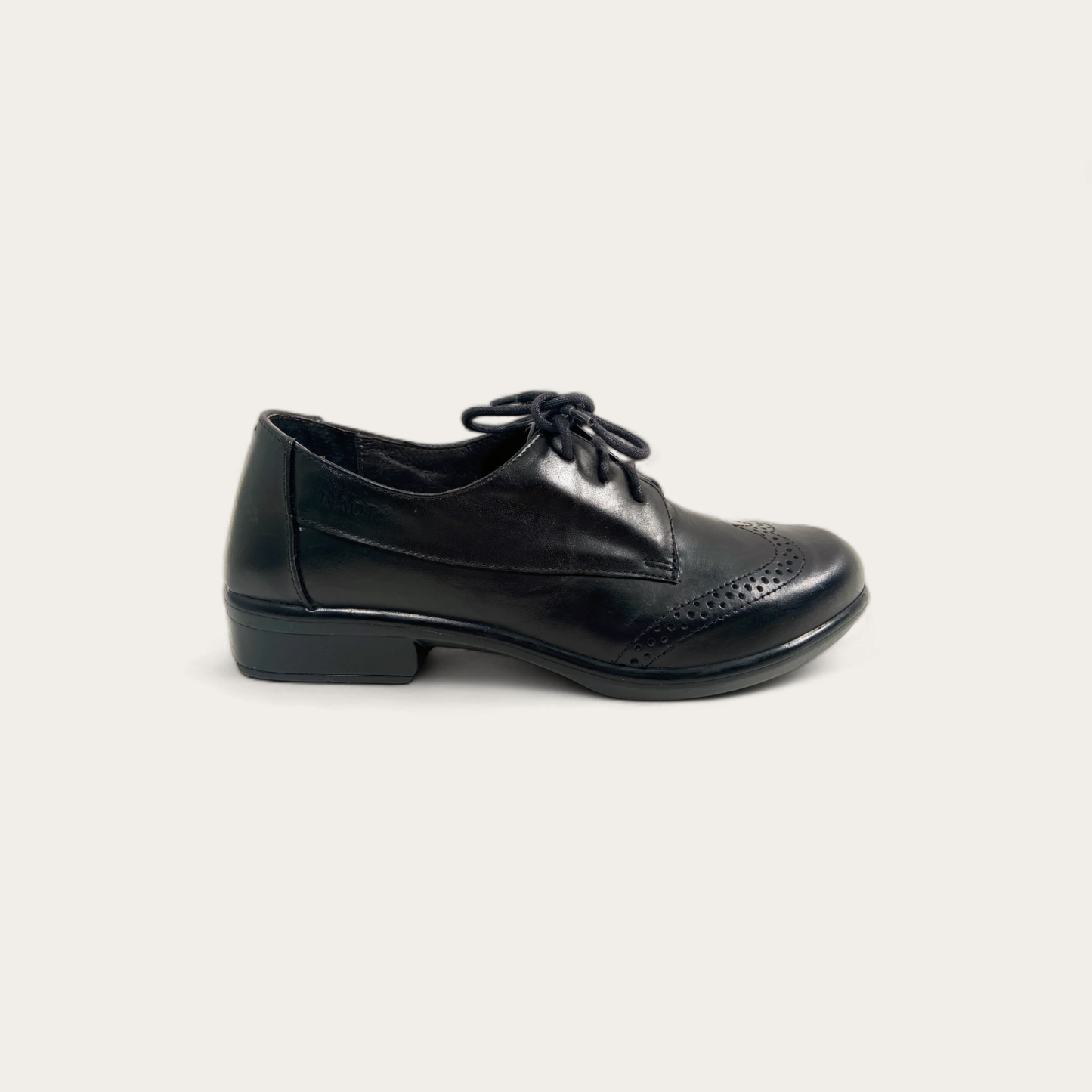 The Naot Lako is a flat lace up shoe. This style has a heel cup for stability & support. Naot's removable, anatomic cork & latex footbed is wrapped in microfiber & leather and molds to the shape of the foot with wear. The Aura Collection features a 1.5" polyurethane sole with a metal shank which is extremely lightweight, durable & abrasive to prevent slipping. This collection uses a hand-sewn Strobel construction making it strong and extremely flexible.