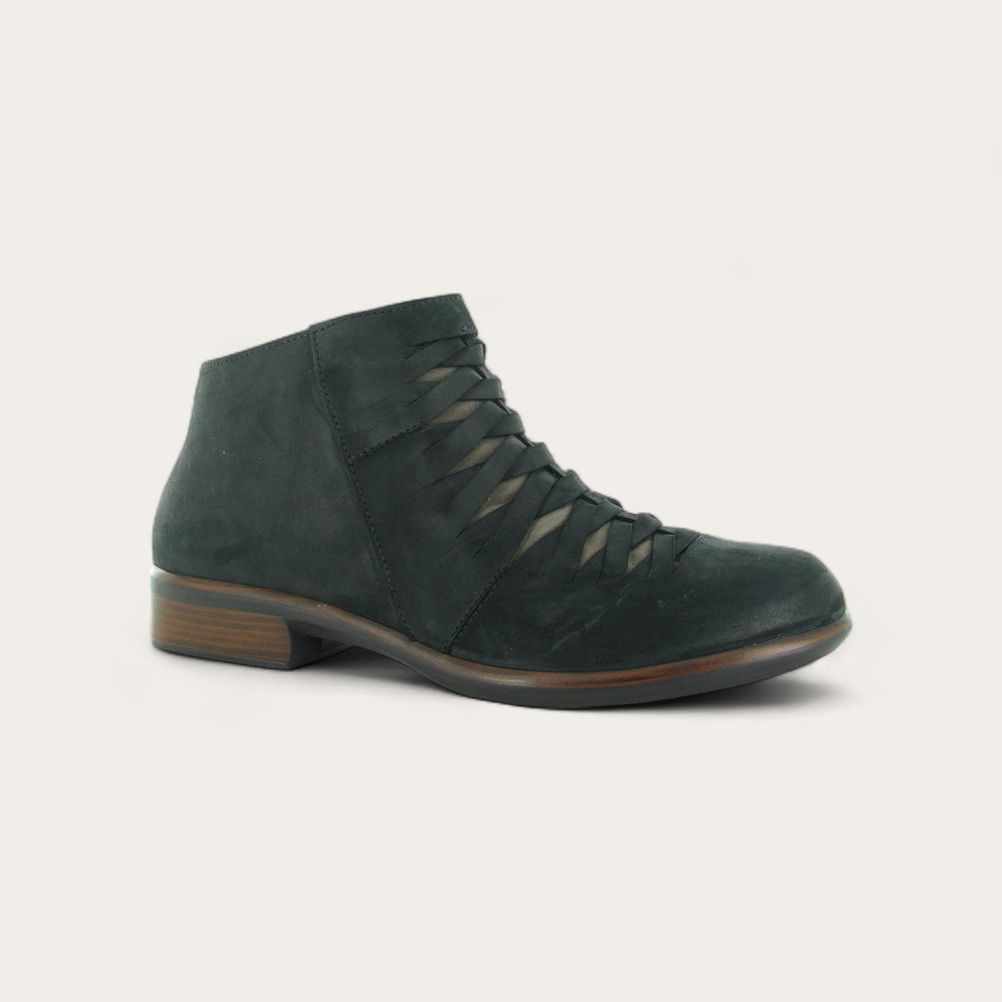 The Leveche is a shoe that will immediately brighten your look on cool fall and cold winter days. With its fresh, semi-cutout look and bold, neutral colors, the Leveche is everything but basic and boring. The Leveche also comes with Naot's removable, anatomic cork & latex footbed, which is wrapped in microfiber & leather and molds to the shape of the foot with wear. The Aura Collection features a 1.5" polyurethane sole with a metal shank which is extremely lightweight, durable & abrasive to prevent slipping. This collection uses a hand-sewn Strobel construction making it strong and extremely flexible. Our patented Naot Replacement Footbeds are also available for Leveche. SIZE INFO: * 3.75" Shaft Height * Product measurements were taken using size 37 (US Women's 6), Width M * Please note that measurements may vary by size DETAILS: