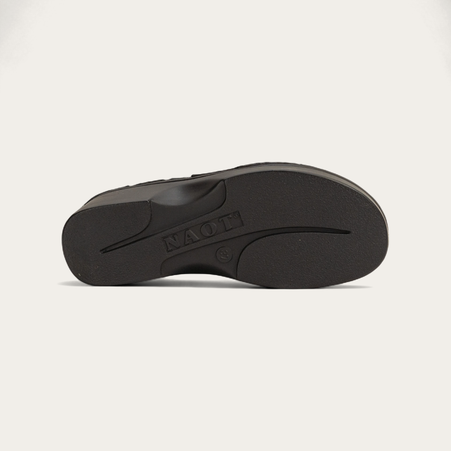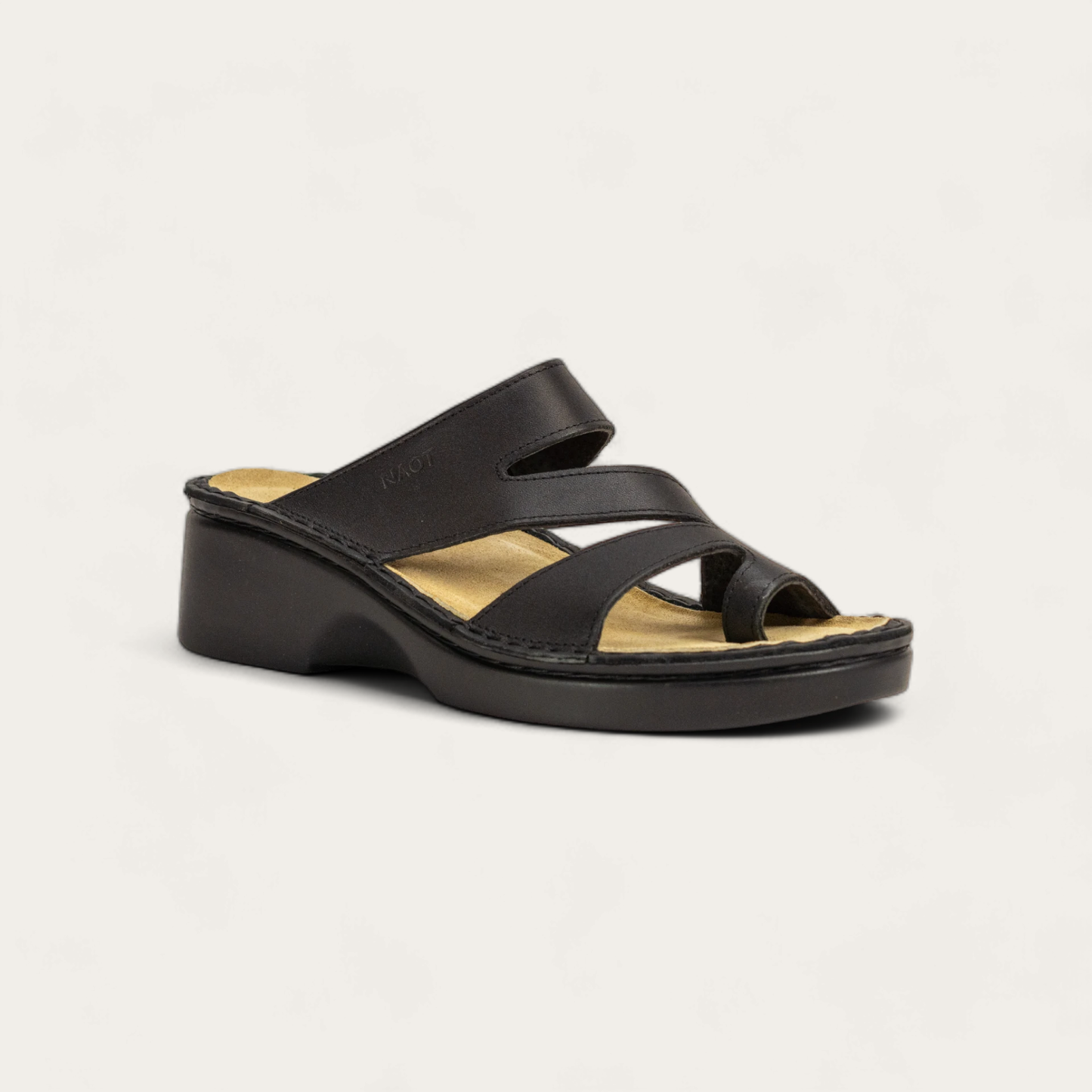 The Monterey is slide sandal with a unique z-strap design. This sandal has a padded instep with gore and a toe loop for additional support. Naot's removable, anatomic cork & latex footbed is wrapped in pampering suede and molds to the shape of the foot with wear. The High Scandinavian Collection features a 1.75"" polyurethane sole which is extremely lightweight, stable and durable. Monterey fits our Scandinavian Footbed.
