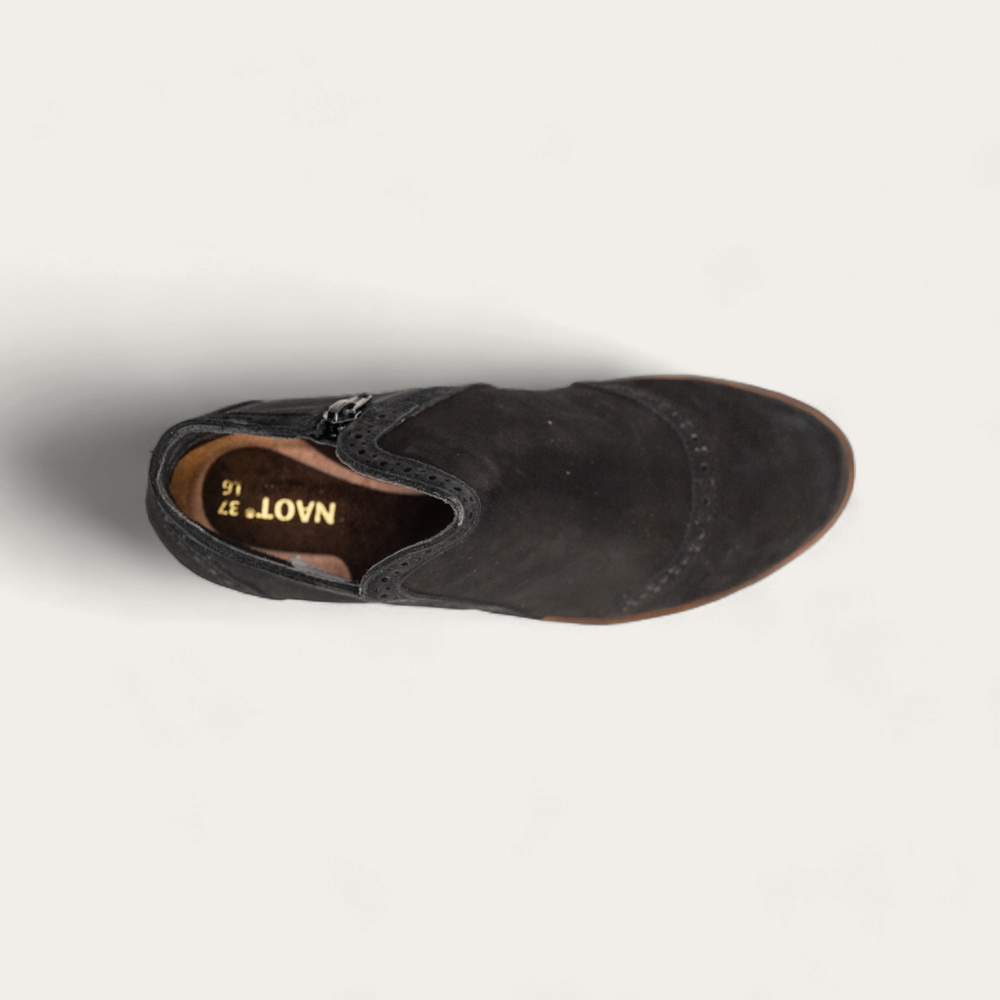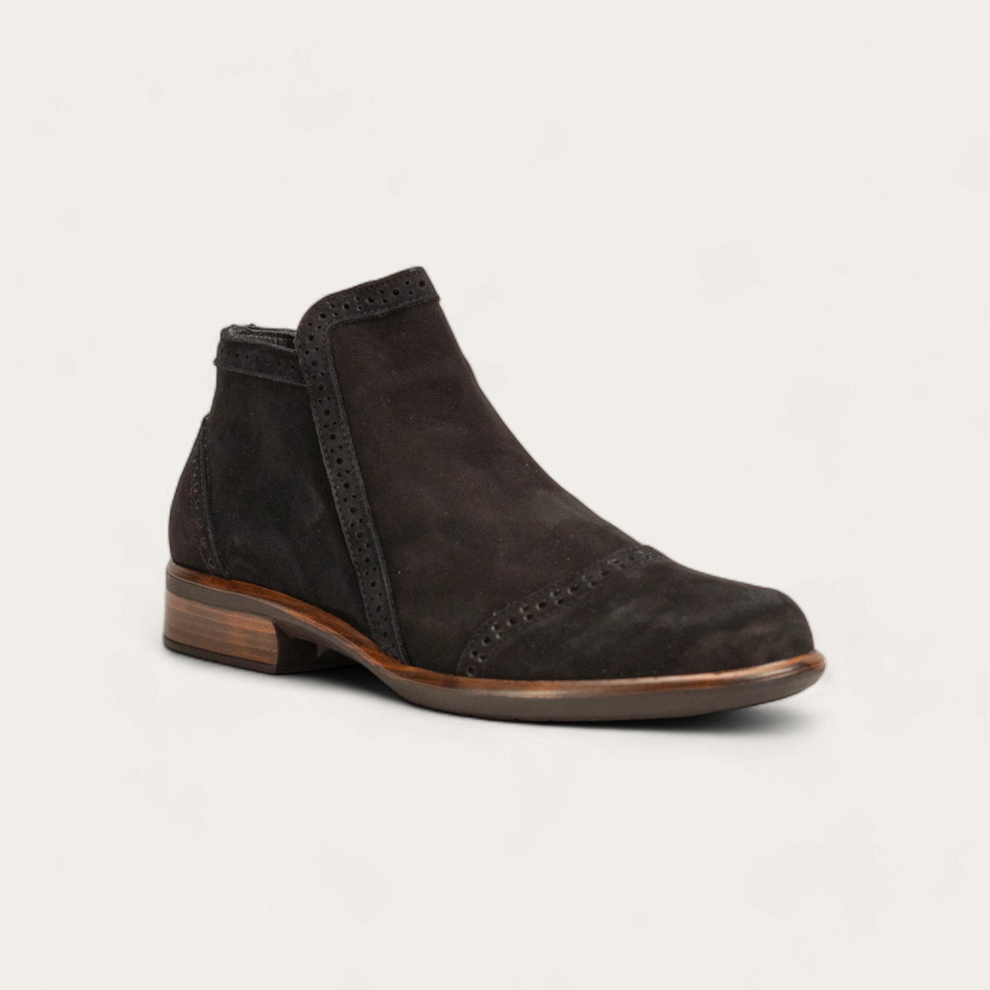 An oxford inspired ankle boot gets a modern twist with our Nefasi bootie. The Nefasi comes with Naot's removable, anatomic cork & latex footbed for all day comfort. The Aura Collection features a 1.5" polyurethane sole with a metal shank which is extremely lightweight, durable & abrasive to prevent slipping. This collection uses a hand-sewn Strobel construction making it strong and extremely flexible. Our patented Naot Replacement Footbeds are also available for Nefasi. SIZE INFO: * 3.25" Shaft Height * 10" Shaft Circumference * Product measurements were taken using size 37 (US Women's 6), Width M * Please note that measurements may vary by size DETAILS: