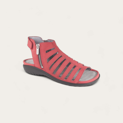 The Pitau is the perfect sandal for comfort and style with goring and zipper and a padded backstrap. With cutout designs and zipper detailing the Pitau is both comfortable and fashionable. Naot's removable, anatomic cork & latex footbed is wrapped in pampering suede and molds to the shape of the foot with wear. The Koru Collection features a 1" polyurethane sole which is extremely lightweight, durable & slip resistant. This collection uses a hand-sewn strobel construction making it strong and extremely flexible.