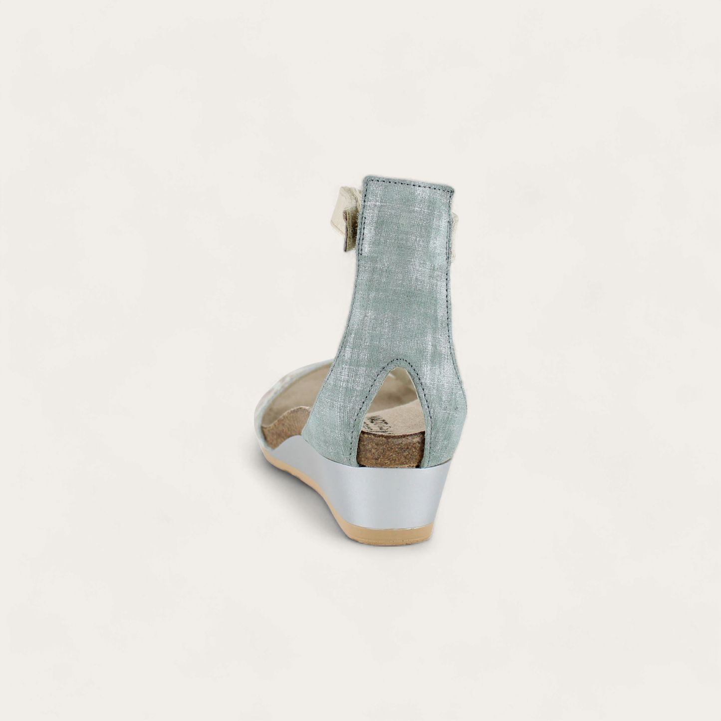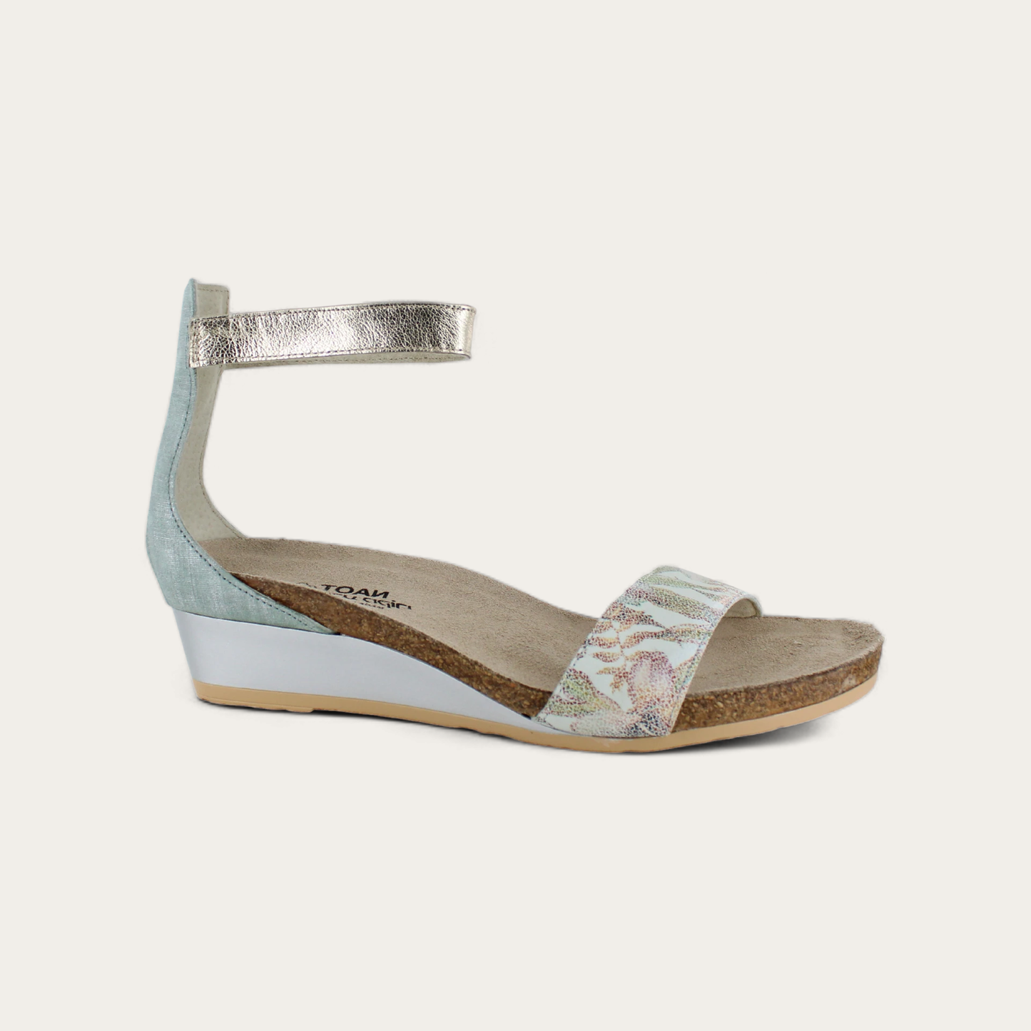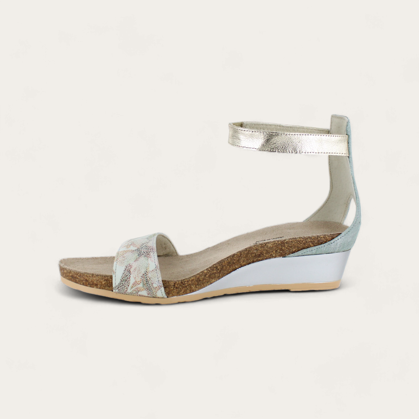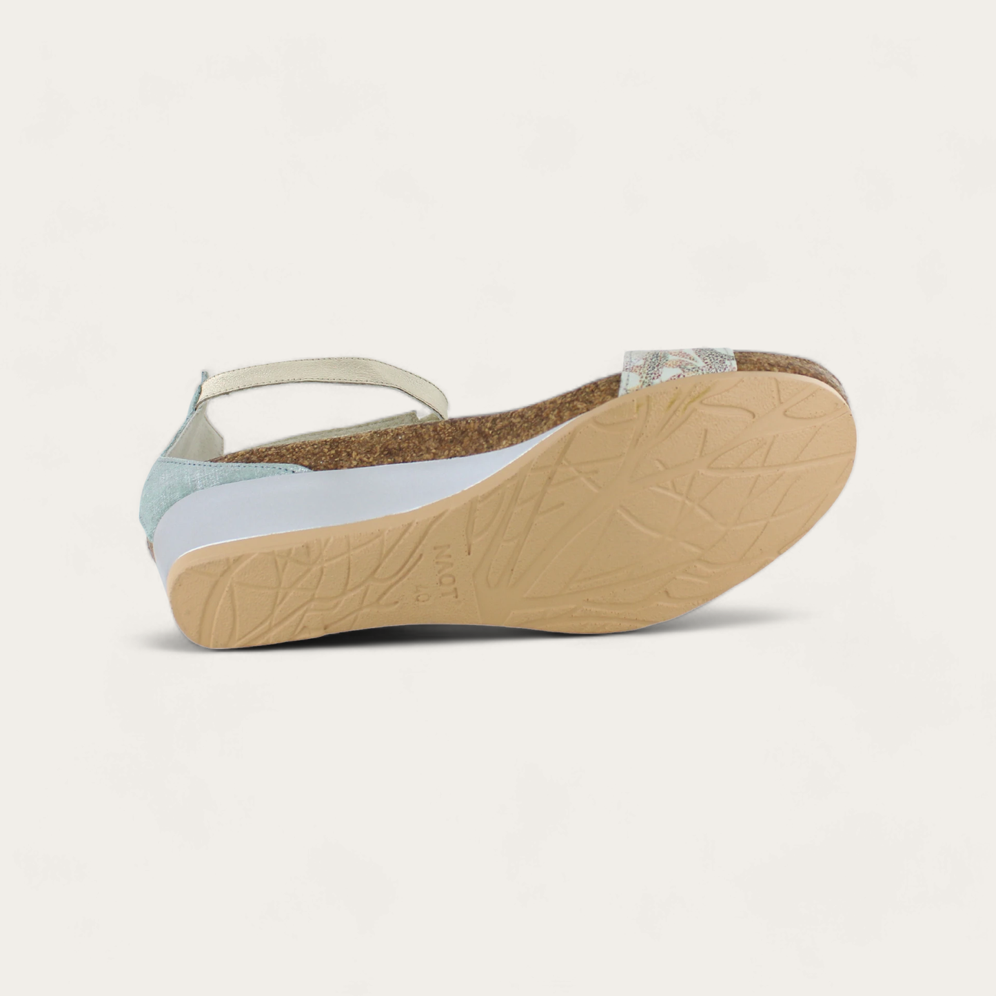 The Naot Pixie is a stylish wedge sandal with contrasting leathers. This style features a hook and loop ankle strap for stability. Naot's anatomic cork & latex footbed is wrapped in a pampering suede and molds to the shape of the foot with wear.