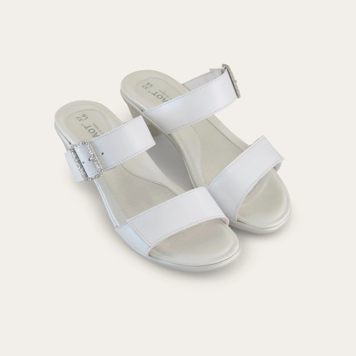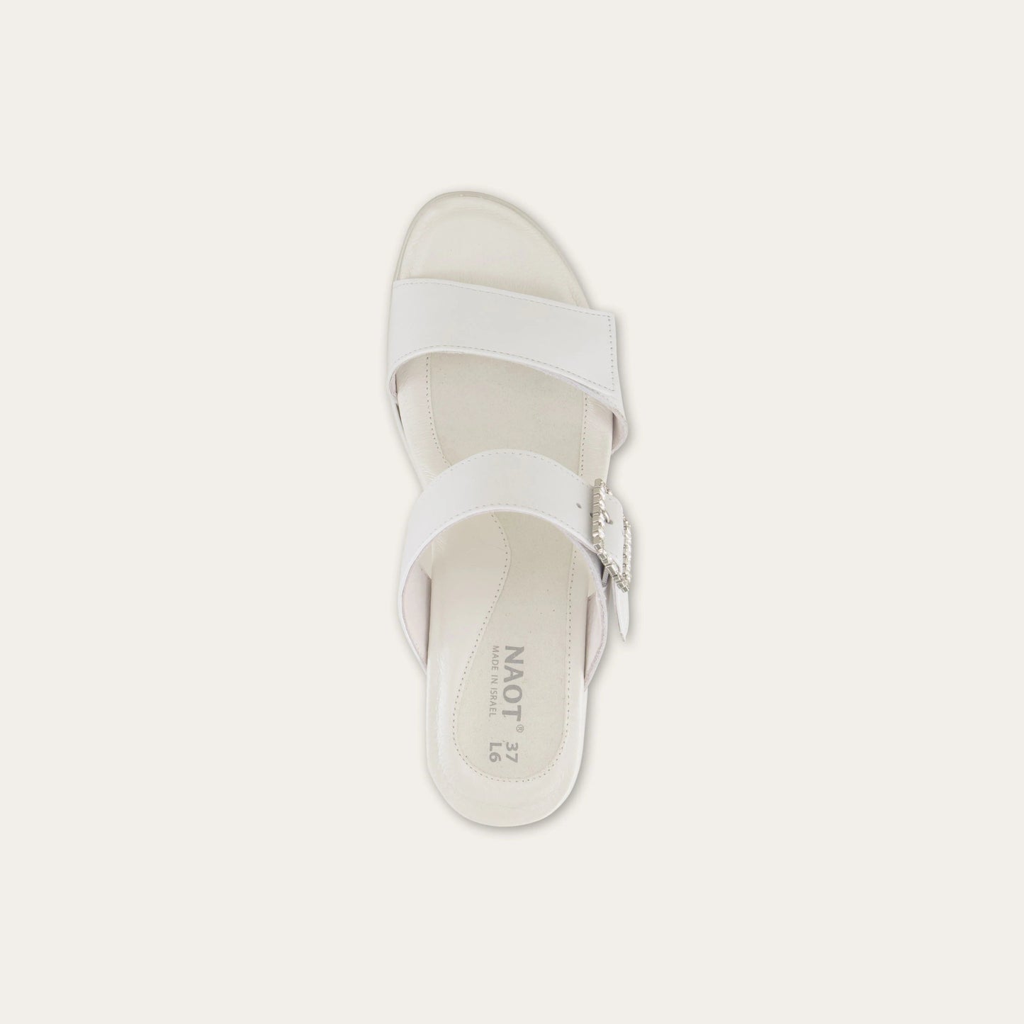 Recent is a stylish sandal that is sure to catch attention. This captivating style showcases a jeweled buckle on a padded front strap, and a hook and loop ankle strap for a secure and personalized fit. Part of the Avantgarde Collection, this sandal boasts a TPR sole with a metal shank, providing the illusion of a 2" heel without sacrificing comfort.