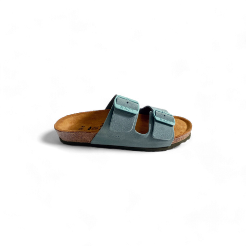 The Santa Barbara is a classic everyday slide sandal. This style features two buckle closures for complete adjustability. Naot's anatomic cork & latex footbed is wrapped in a pampering suede and molds to the shape of the foot with wear. The Classic Collection features a 1.25" EVA sole. American Podiatric Medical Association (APMA) Accepted for promoting good foot health.