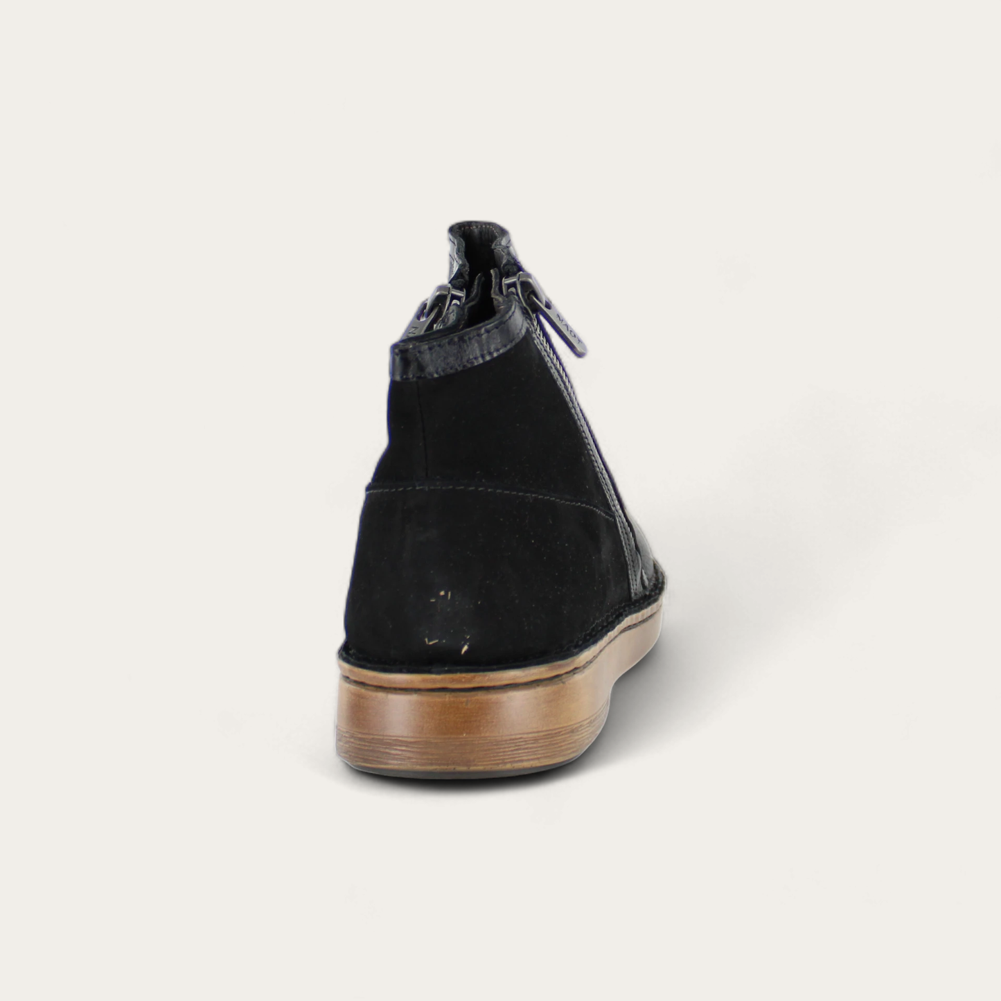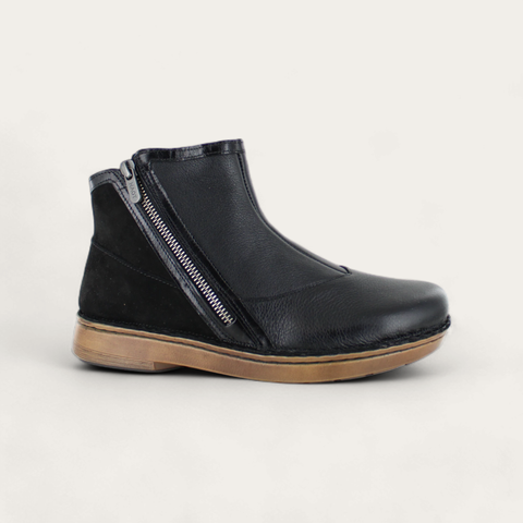 Smooth leather and nubuck, with side zippers give the Spello boot its balanced look, while a removable footbed provides all-day comfort to this shoe. Naot's anatomic cork & latex footbed is wrapped in a pampering suede and molds to the shape of the foot with wear. American Podiatric Medical Association (APMA) Accepted for promoting good foot health. Our patented Naot Replacement Footbeds are also available for Spello. SIZE INFO: * 4.75" Shaft Height * 10.5" Shaft Circumference * 3mm wider than Allegro * 5mm volume than Allegro * Product measurements were taken using size 37 (US Women's 6), Width W * Please note that measurements may vary by size DETAILS: