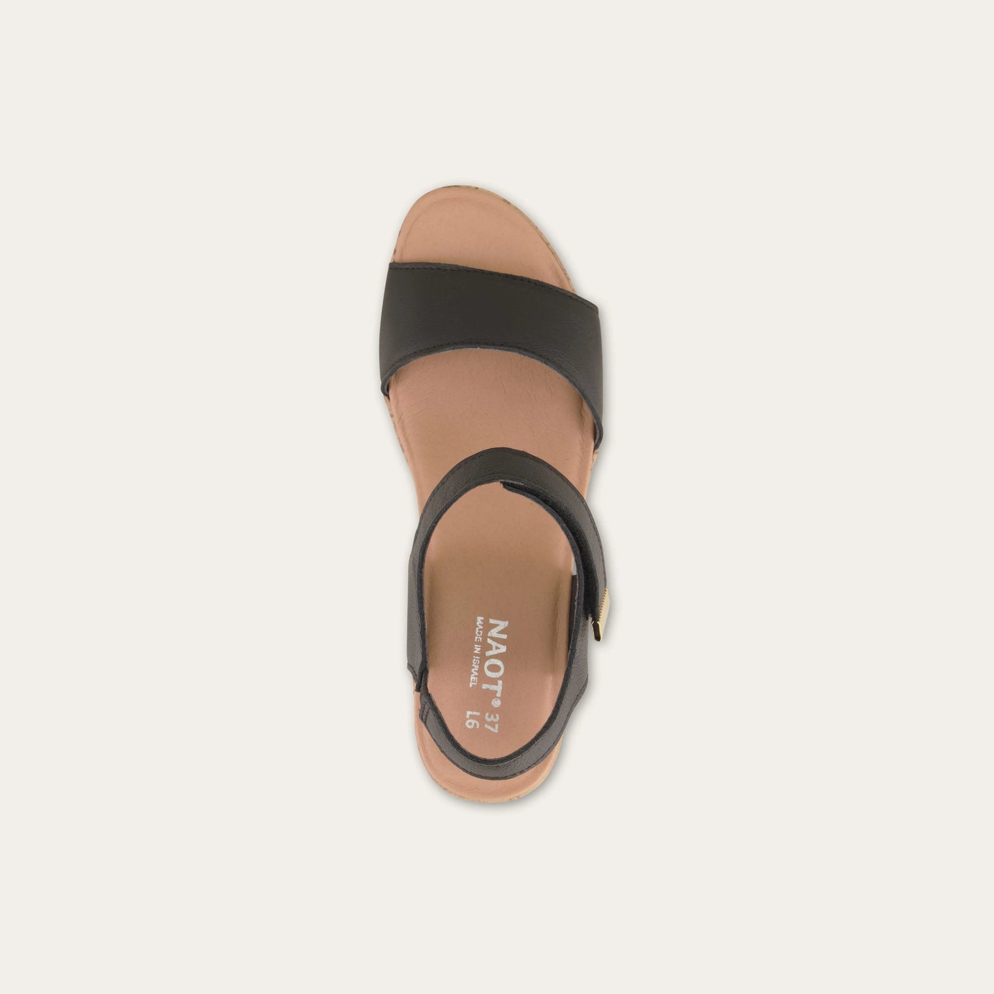 Elevate your style with Naot Summer and its extra comfy, bold platform wedge sandal. It offers a hook & loop strap that provide adjustability. Naot's anatomic cork & latex footbed is wrapped in pampering suede and molds to the shape of the foot with wear. The Resort Collection features a TPR sole, it offers the look of a 2.75 inch wedge without the feel.
