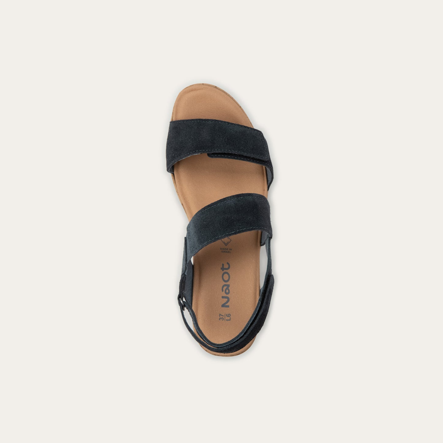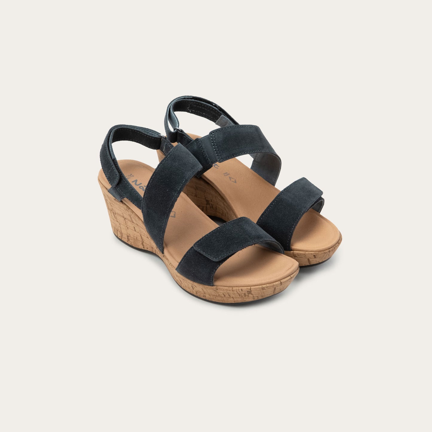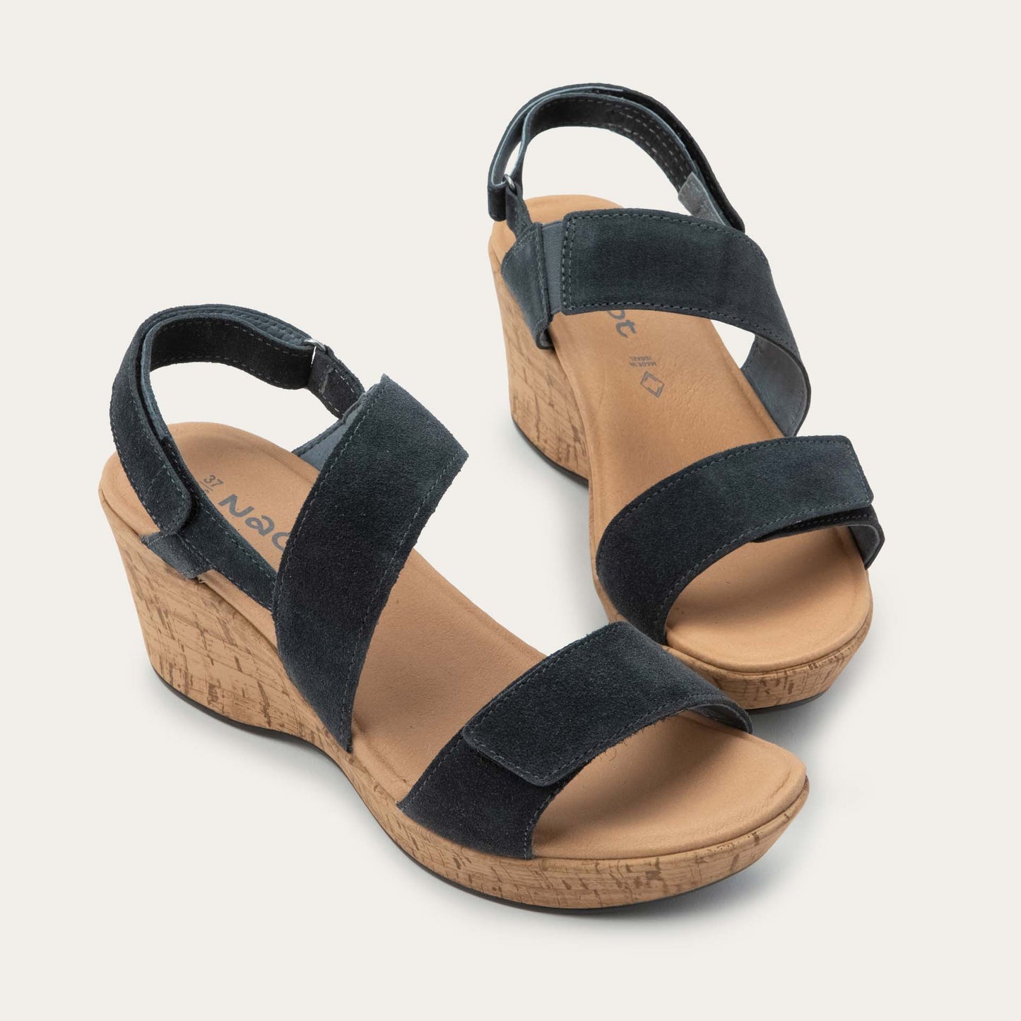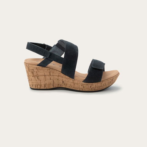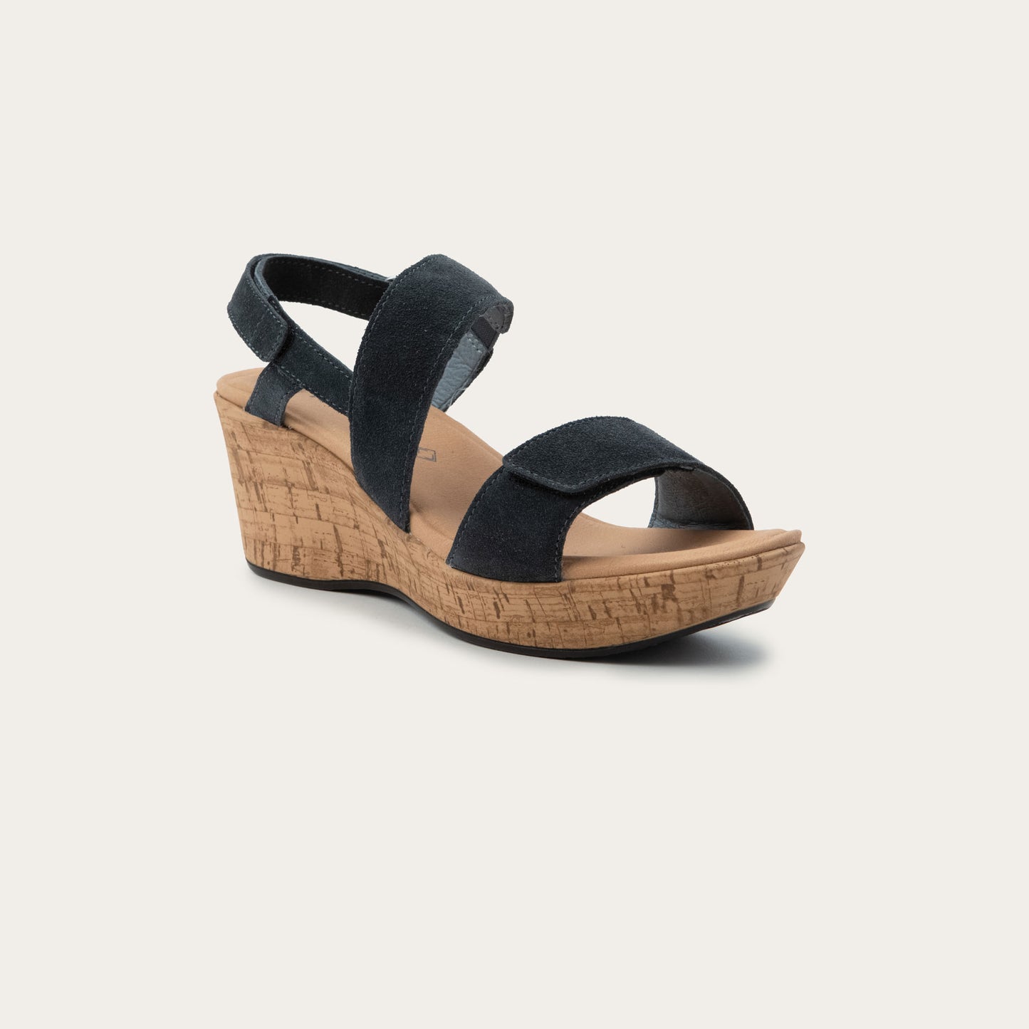 The Sunrise platform sandal features 2.5-inch heels, two Velcro straps, and a wide diagonal strap with rubber for all-day comfort. True to size and part of the Mindful Elegance trend, this versatile sandal pairs sleek design with high-quality materials.
