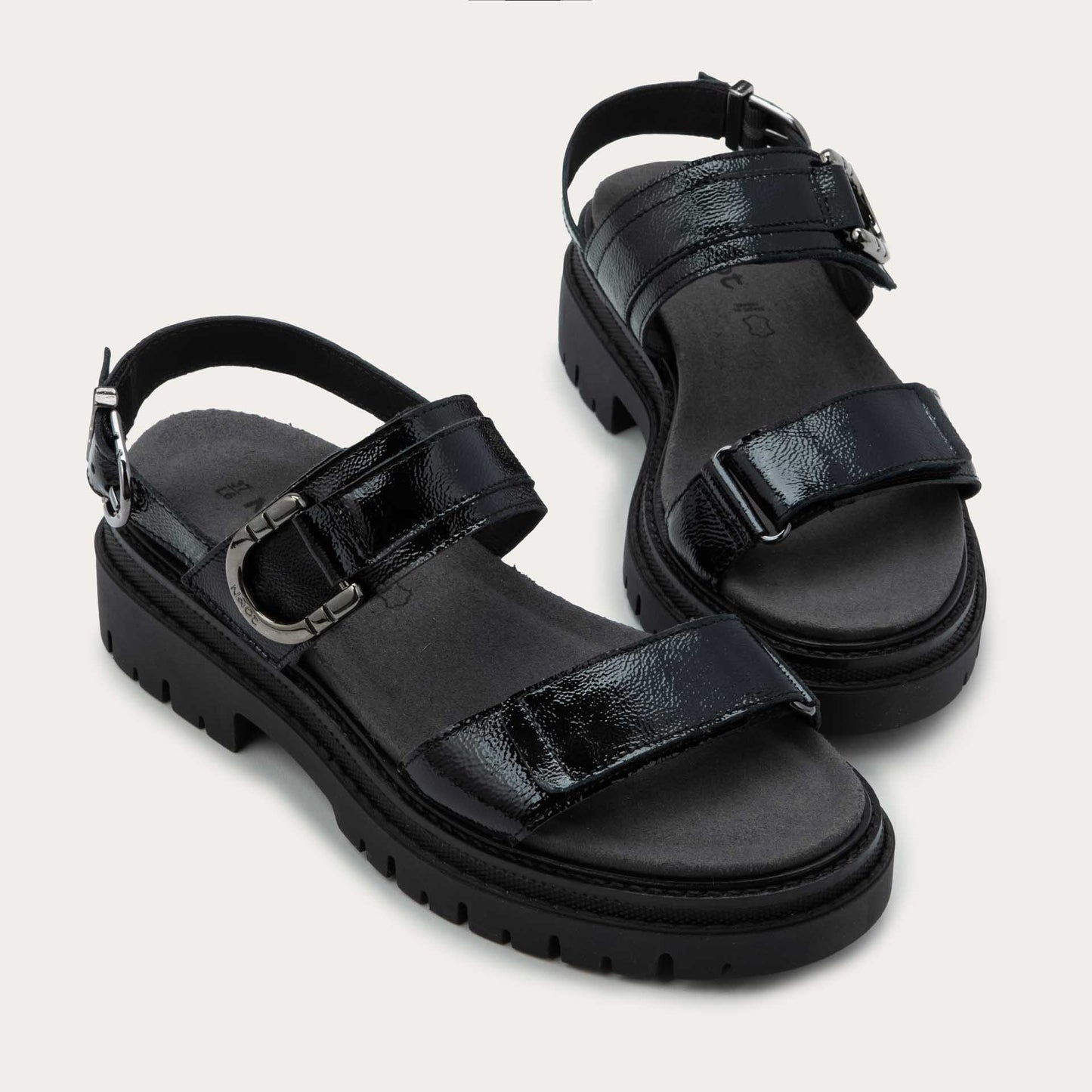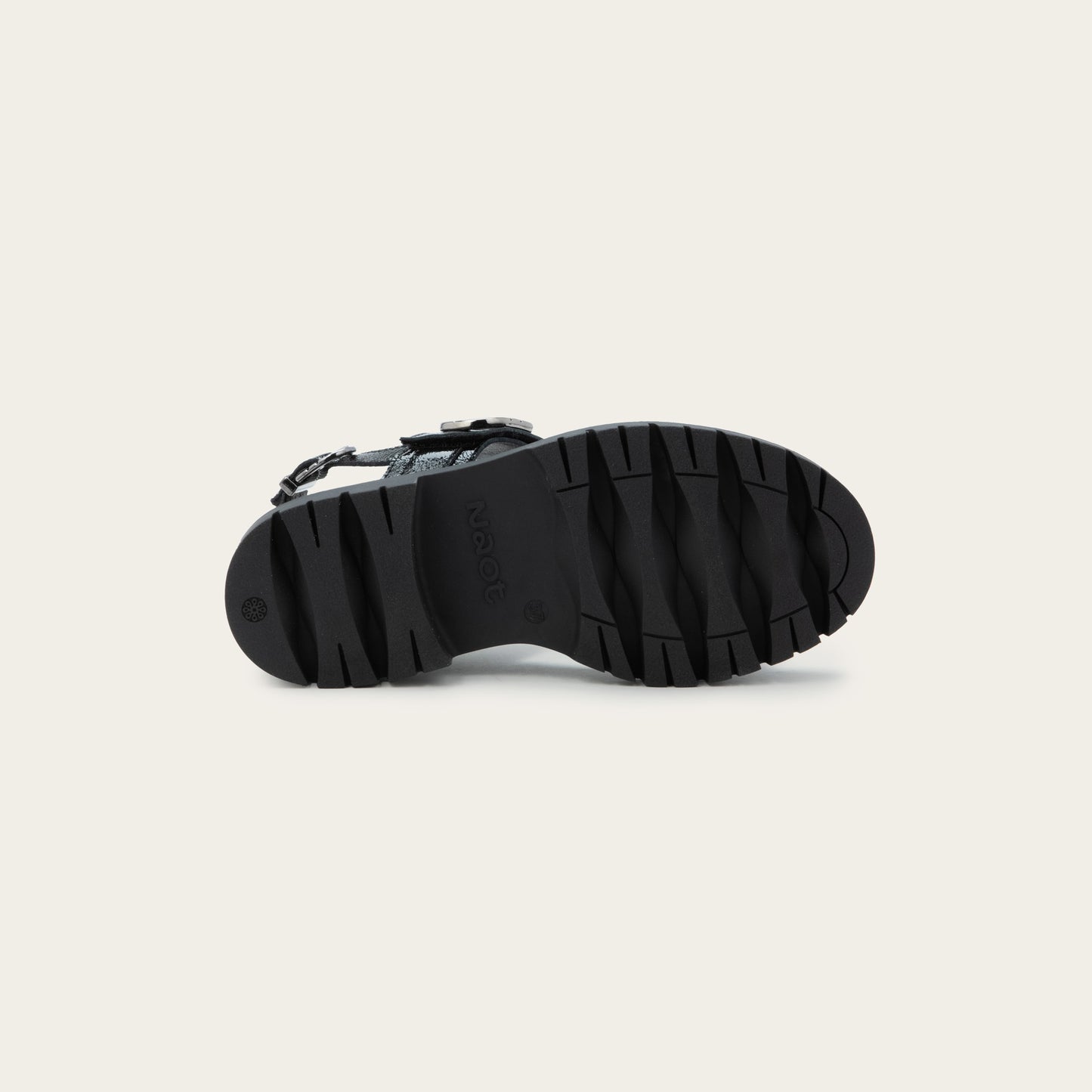 Introducing Trinity - where rugged elegance meets superior comfort. Featuring a buckle backstrap and hook and loop straps for a customizable fit, this sandal is adorned with striking metal ornamentation. The lug sole ensures durability and traction, making it the perfect blend of bold style and practical function. Crafted with Naot's anatomic cork and latex footbed wrapped in pampering suede and molds to the shape of your foot with wear, ensuring personalized comfort. The Downtown Collection's 1.5" rubber sole offers both style and stability.