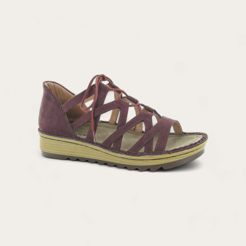 The Yarrow is an on trend ghillie lace up sandal. This style has a padded heel cup for ultimate comfort and laces for accessibility. Naot's removable, anatomic cork & latex footbed is wrapped in pampering suede and molds to the shape of the foot with wear. The Bloom Collection features a 1.75'' polyurethane sole which is extremely lightweight, and durable. Our patented Naot Replacement Footbeds are also available for Yarrow.